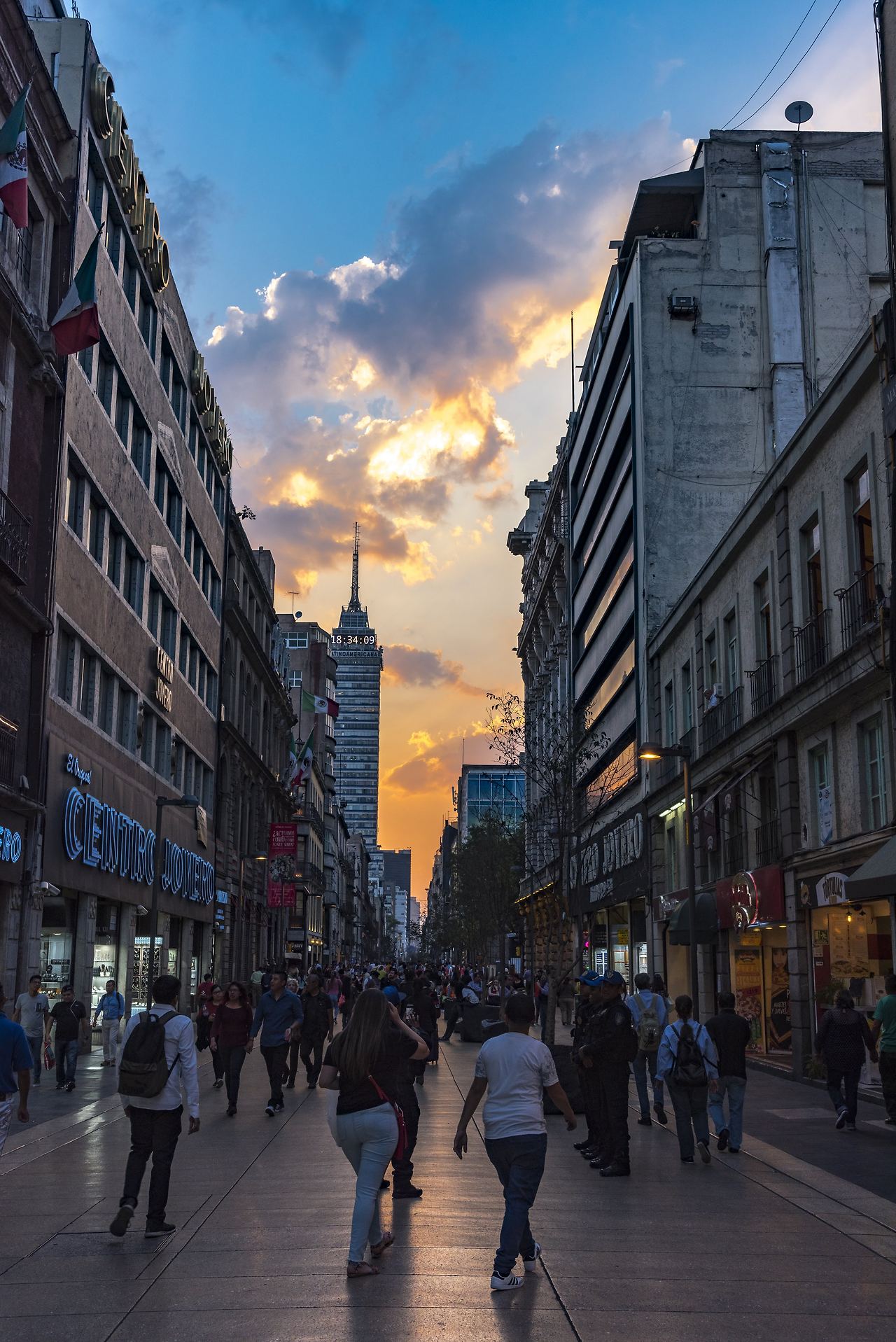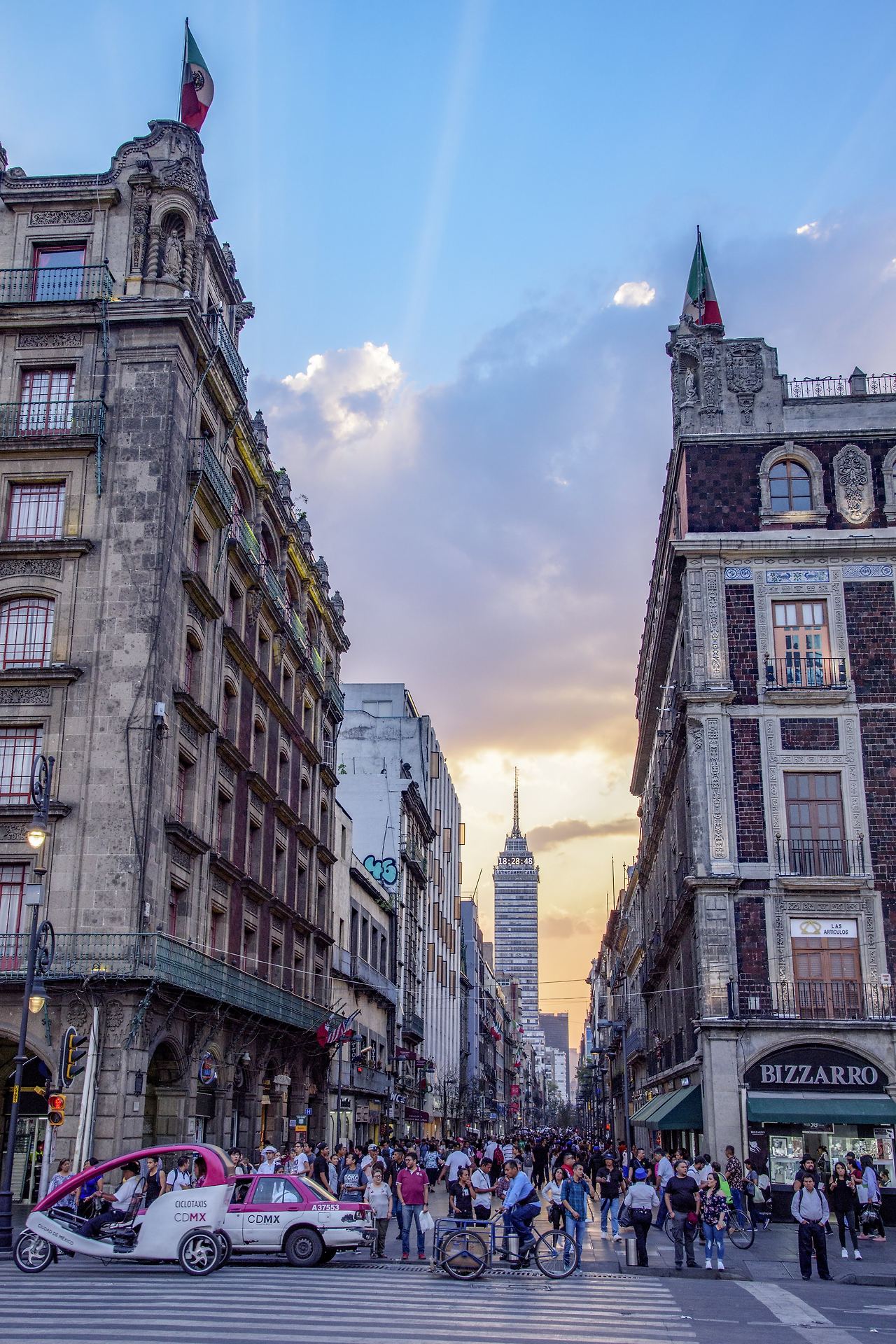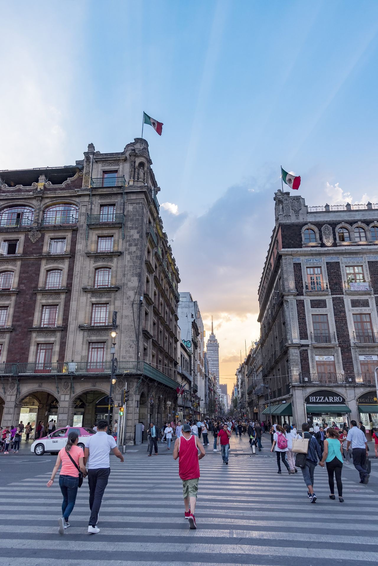 쏘깔로의 서쪽 광장에서 라틴아메리카나 빌딩으로 이어지는 중심도로