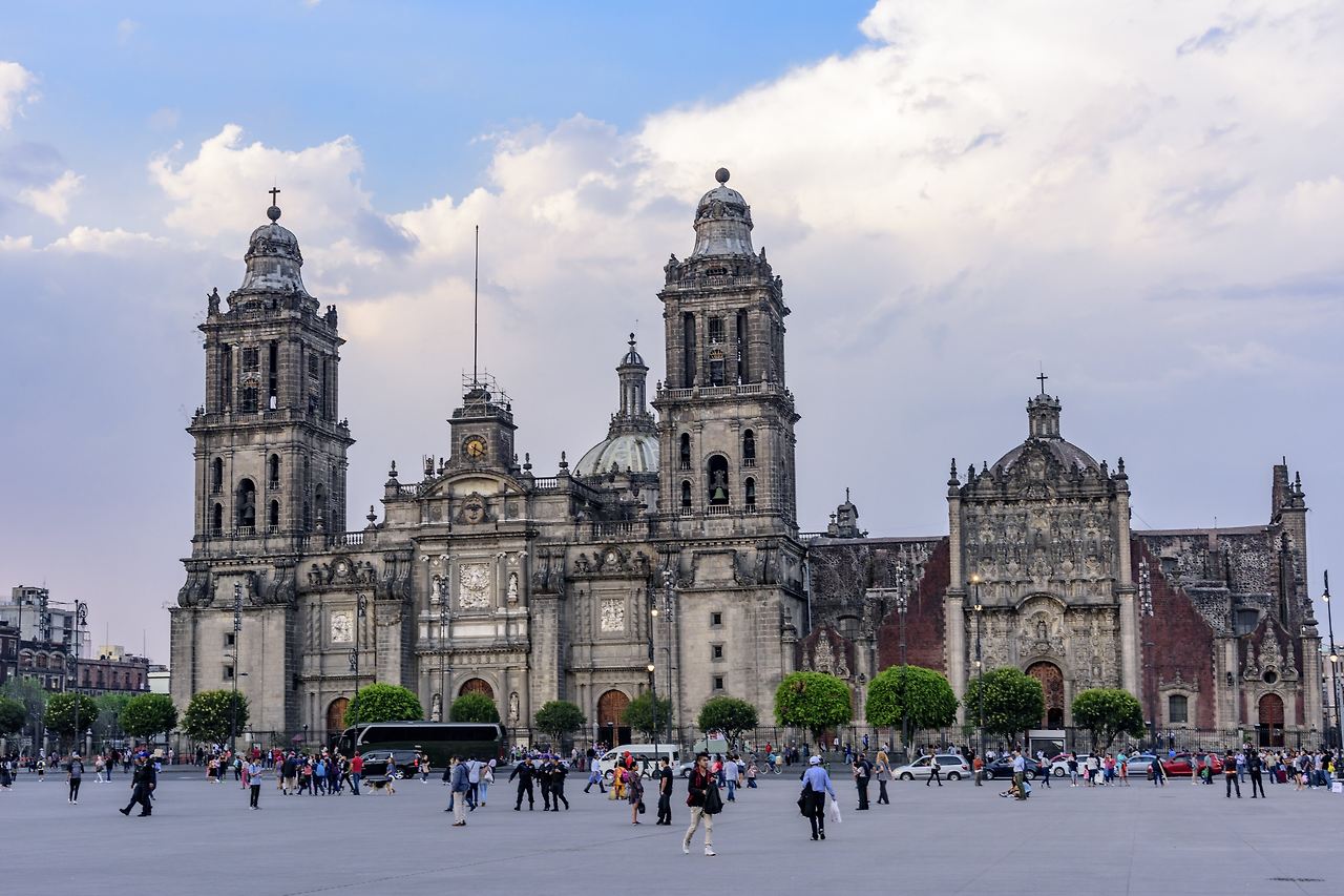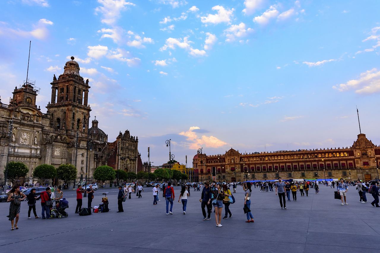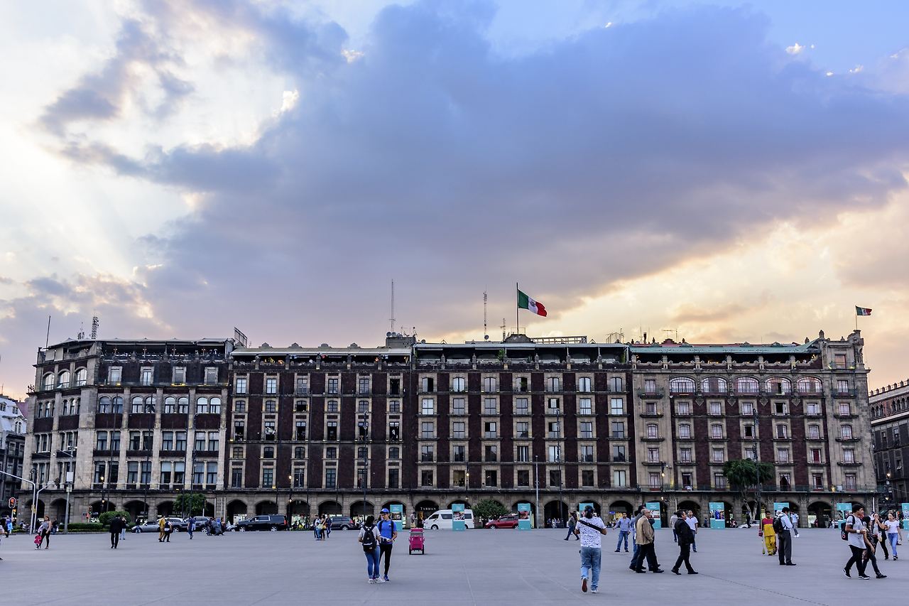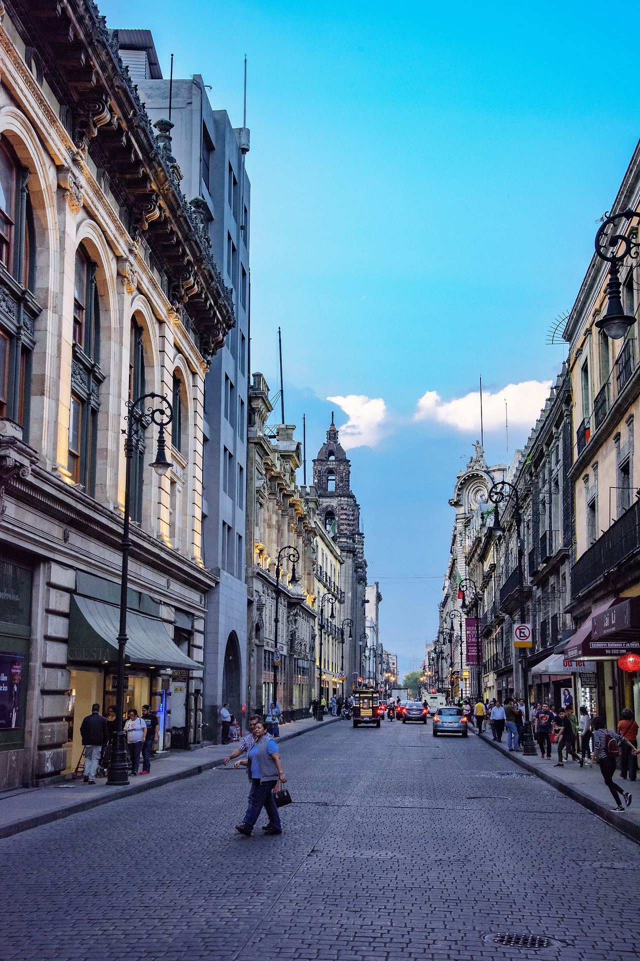 쏘깔로의 서쪽 광장에서 라틴아메리카나 빌딩으로 이어지는 중심도로