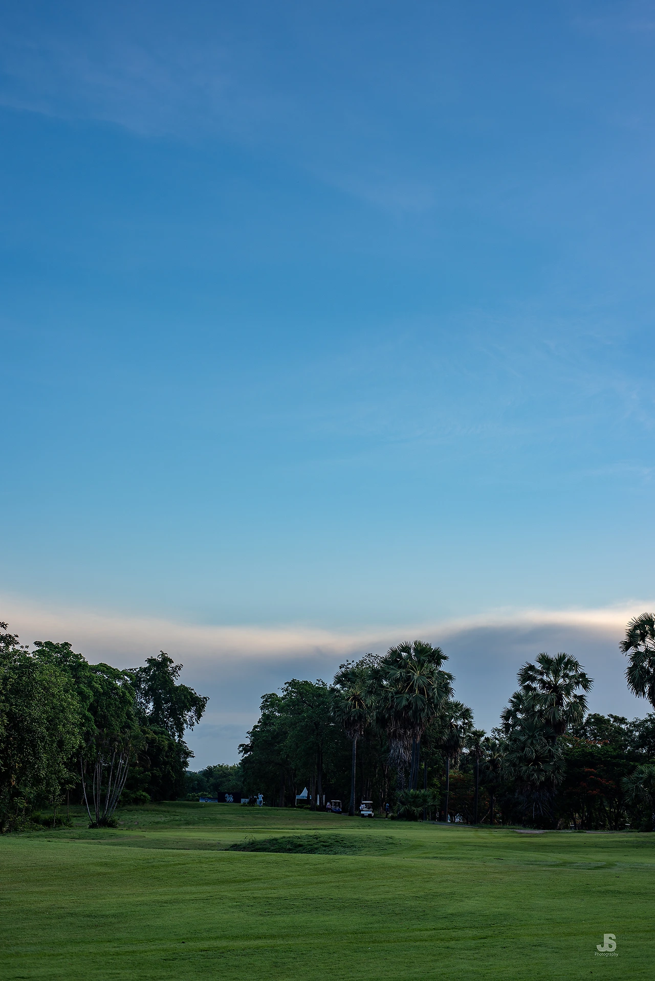 아직 어두컴컴한 새벽시간에 간단히 배를 채우고 먼 동이 떠오는 6시 반에 캐디와 함께 노캐디 전용코스로 향했다.