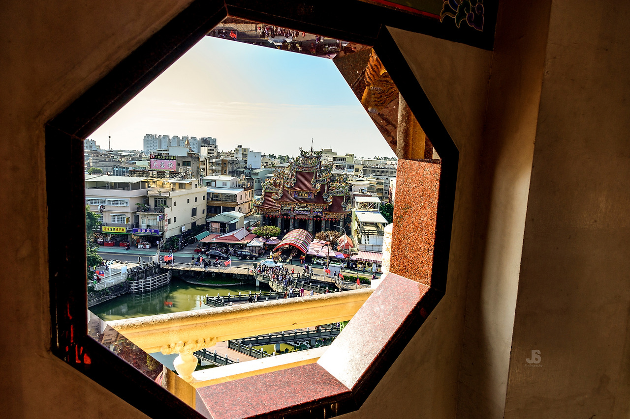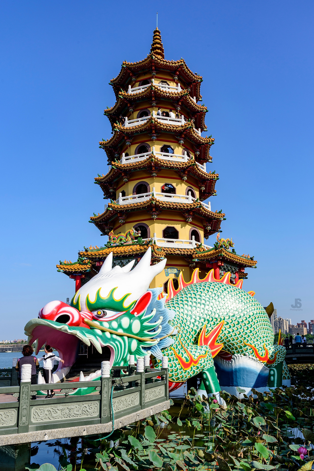 용호탑은 연지담이라는 큰 연못의 한쪽 끝에 설치된 7층 쌍탑이다. 출입구가 각각 용과 호랑이 모양으로 되어 있고 용의 입으로 들어가 호랑이의 입으로 나오도록 되어 있다. 이곳을 통과하면 불운을 몰아내고 행운을 받아들일 수 있다고 한다. 그래서인지 이 입구를 통과하기 위한 관람객들이 줄지어 서 있었다. 쌍탑의 내부계단을 다 오르면 7층에서 바라보는 연지담과 주변 사원들 그리고 쭤잉구의 동네 풍경이 한눈에 펼쳐진다. 주변에 높은 빌딩이 없고 가로막힘 없이 시원하게 펼쳐져서 7층이라는 낮은 높이에서 바라보는 전망임에도 가슴이 탁 트이는 느낌이었다.