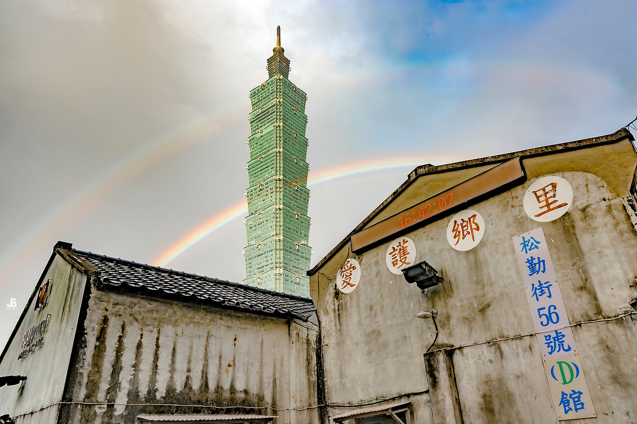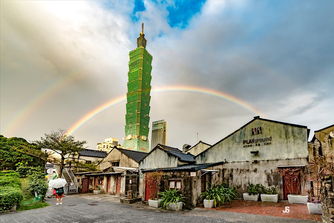 전망대에 오르기 전 쓰쓰난춘을 구경했다. 이곳은 1949년 중국내전 이후 본토에서 건너온 군인가족들이 살던 곳으로 대만의 주요한 역사 유산이라고 할 수 있다. 옛 주택들 너머로 대만 건축기술의 정점에 있는 타이베이101이 대비되는 풍경이 꽤 이색적이다. 이곳을 방문했을 때 한동안 쌍무지개가 빌딩 뒤로 울타리를 치고 있었다.