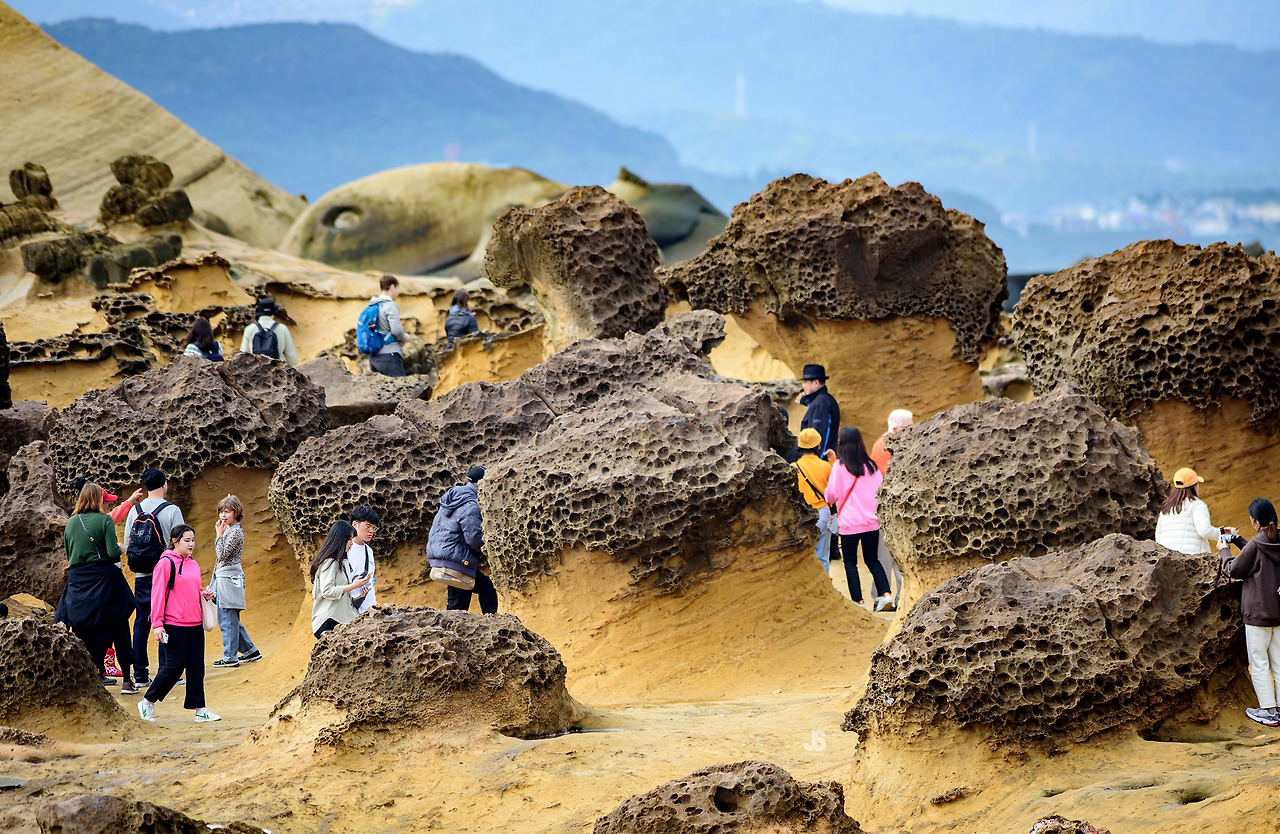 번잡한 출근 시간이 지난 후 시먼딩 지하철역 5번 출구 앞 도로변은 크고 작은 투어버스들로 가득 채워진다. 모두 소위 예스진지투어를 떠나기 위해 대기 중인 차량들이다. 예스진지는 각각 예류지질공원, 스펀, 진과스, 지우펀의 지명 앞글자를 따서 붙인 이름이다. 예류지질공원은 퇴적사암층이 바람과 파도의 침식과 풍화작용으로 만들어진 기암괴석으로 유명한 해안공원이다.