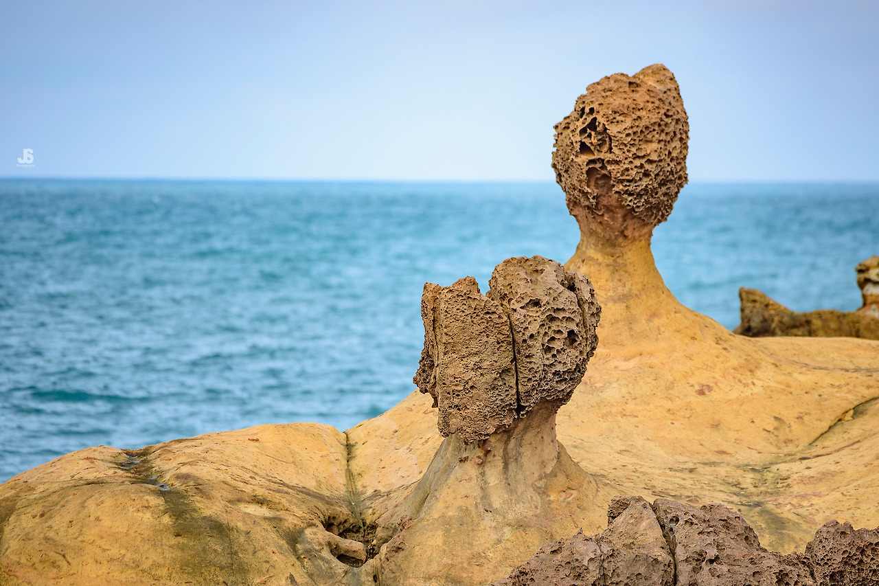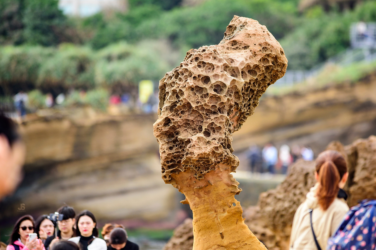 제주의 현무암처럼 보이는 저 바위들은 사실 퇴적된 사암이다. 파도와 바람 때문에 차별적으로 풍화되고 침식돼서 마치 사람이 빚은 것 같은 모양새를 낸다. 바윗 속 철분이 산화되어 검은색을 띠고, 구멍이 나 있어서 더더욱 현무암처럼 보이기도 한다. 여왕바위가 그 중 가장 유명하다. 이집트의 여왕 네페르티티를 닮았다고 지어진 이름이다. 계속된 침식으로 목부분이 약해져서 수년 안에 붕괴될 가능성도 있다고 한다. 예류를 대표하는 여왕바위가 사라질 것에 대해 다양한 보존대책을 두고 토론이 이루어 졌고, 그 결론은 붕괴에 대해 과학적인 모니터링을 하되 절대 인위적인 보존조치를 하지 않는 것으로 났다고 한다. 지금은 사람의 접촉을 최대한 제한하기 위해 똑같은 복제품을 만들어 그것을 관람용으로 활용하고 있는 중이다. 현재 상태에서 그대로 보전조치가 불가능한 것이 아닌데도 비록 흔적 없이 사라질지라도 자연의 순리에 맡기고 그 과정을 기록하고 추억하겠다는 사람들의 계획이 근사하다.