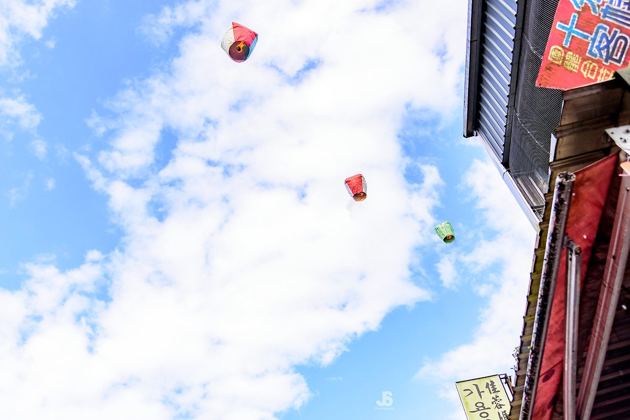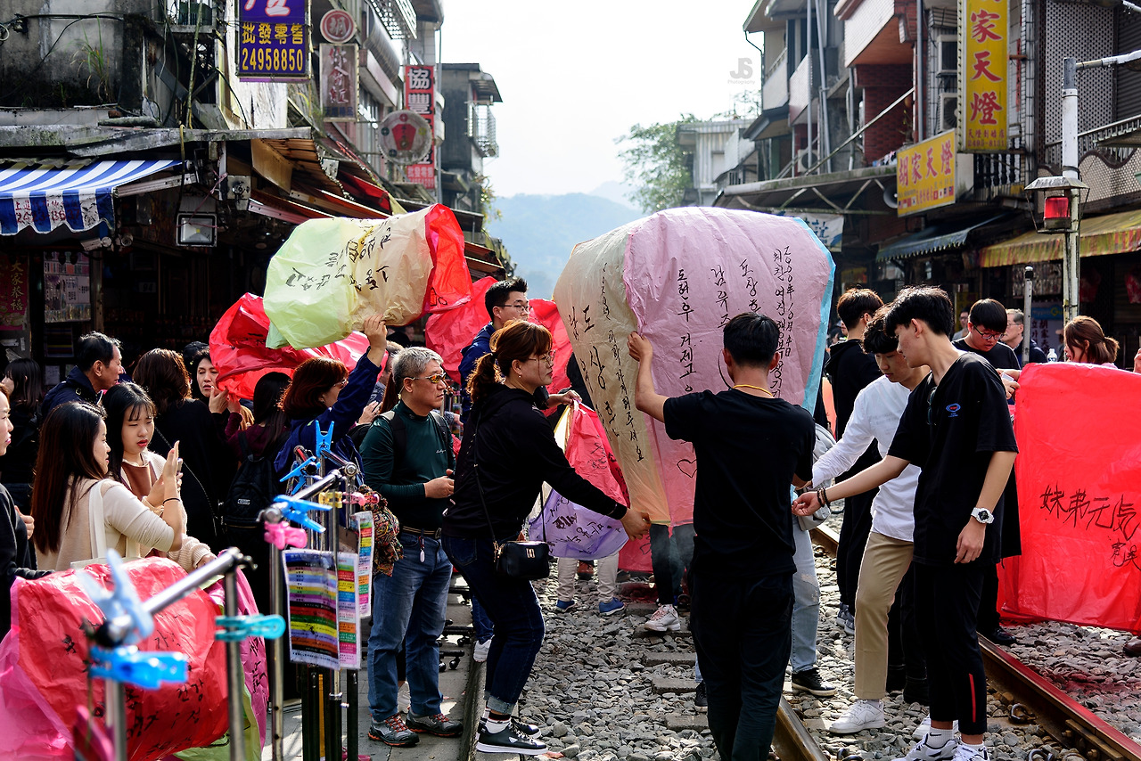 폭포에서 20분 정도 걸어서 스펀 옛 마을에 도착했다. 기찻길 양쪽으로 상가들이 줄지어 있다.
