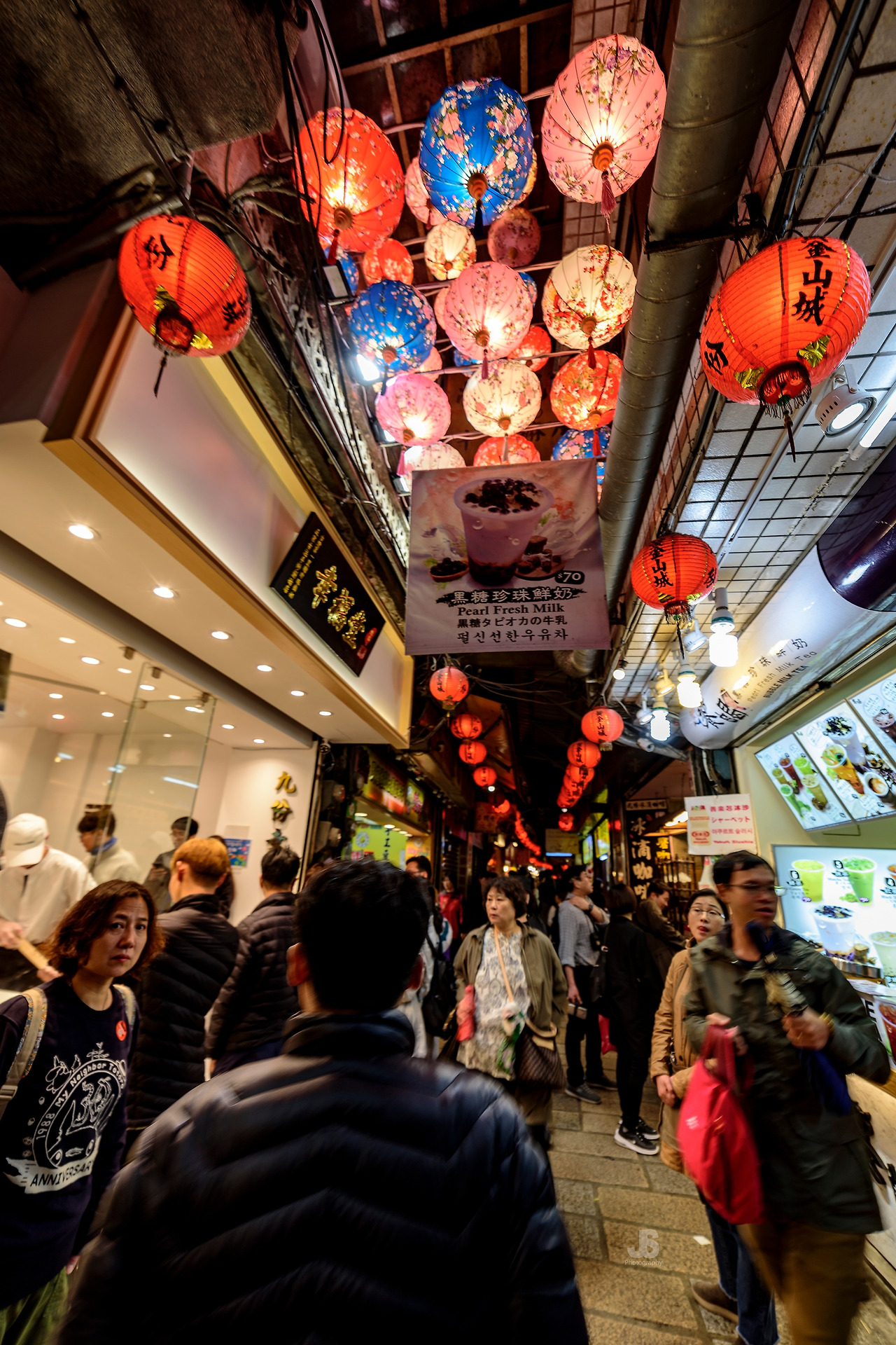 지우펀은 북부해안 비탈에 형성된 작은 금광마을이다. 비탈진 마을 사이사이로 좁은 골목길들이 미로처럼 이어지고 마을을 관통하는 아케이드형 도로에는 각종 기념품과 간식거리를 파는 상점들이 끝없이 이어진다. 워낙 골목이 좁은 데다가 대부분 관광객들이 홍등이 켜지는 초저녁 시간에 한꺼번에 몰리다 보니 잠시 서서 한 번 두리번거릴 새도 없이 밀려다녀야 한다. 홍등을 배경으로 셀카를 찍을 수 있는 포인트마다 줄을 서서 촬영 차례를 기다리기도 한다.