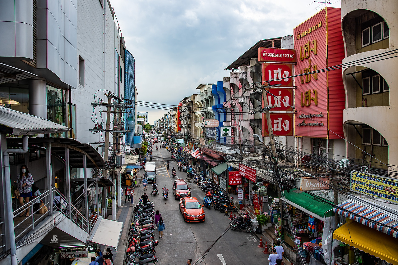 사진 속은 더 몰 방카피 앞 큰길 건너편 시장 골목이다. 늦은 오후 시간이라 퇴근한 사람들과 하교하는 학생들로 북적 거린다. 반듯하게 뻗어 있는 도로변으로 아케이드형 상가가 길게 늘어져 있다. 업력이 꽤 오래되어 보이는 가게들이 공실 하나 없이 빼곡히 채워져 있다. 어스름 땅거미가 내려앉는 아스팔트 위로 희미하게 가게의 조명들이 반사되어 튀어 오르더니 지나가는 행인들의 얼굴에 옅은 미소로 번져간다. 한낮의 열기가 한 뜸 식어 내린 골목은 사람들의 온기로 다시 채워진다.
