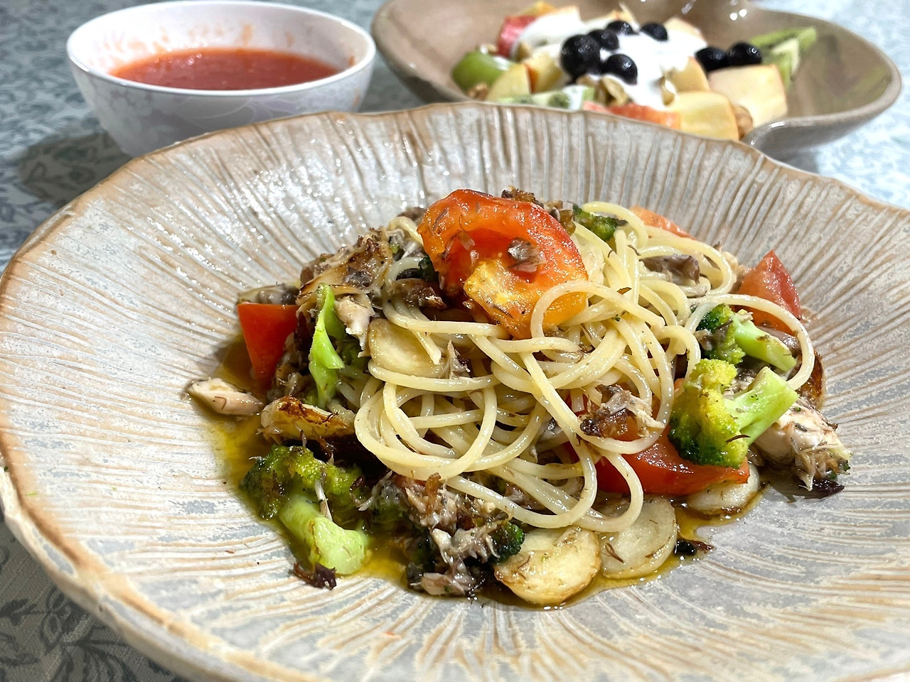 나는 아침에 일어나자 고등어통조림을 생각했다. 생선 특유의 고소한 비릿함과 올리브유가 만나 스파게티까지 섞으면 얼마나 맛있을까! 머리에 그린 그림대로 실행에 옮겼다. 물을 끓여 스파게티 면을 삶았고, 그 사이에 프라이팬에 올리브유를 가득 뿌려 마늘을 구웠다. 마늘이 채 다 익기도 전에 급한 마음에 고등어, 브로콜리, 토마토를 한꺼번에 부어버렸다. 아침엔 이렇게 마음이 급하다. 스파게티면이 익는 동안 올리브유에 구워낸 고등어와 채소 사이에 익은 스파게티면을 텀벙.