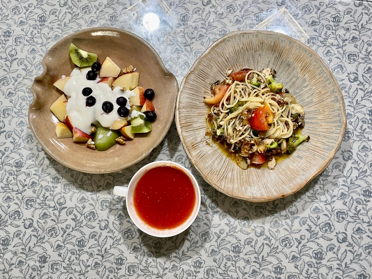 이렇게 나의 아침 함상에 곁들인 익힌 토마토 쥬스. 거한 아침 식사는 못하더라도 토마토쥬스라도 꼭 마신다. 글을 쓰기 위해 기사를 찾다 보니 저녁에 먹으면 피부 재생에 더 좋다는 말을 보았다. 앞으로는 아침이 아니라 저녁에 마실 계획이다. 흡수율을 높이기 위해 올리브유까지 살짝 뿌려서!