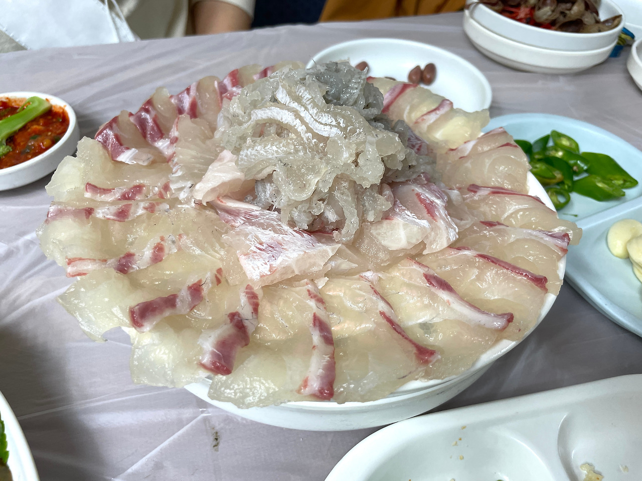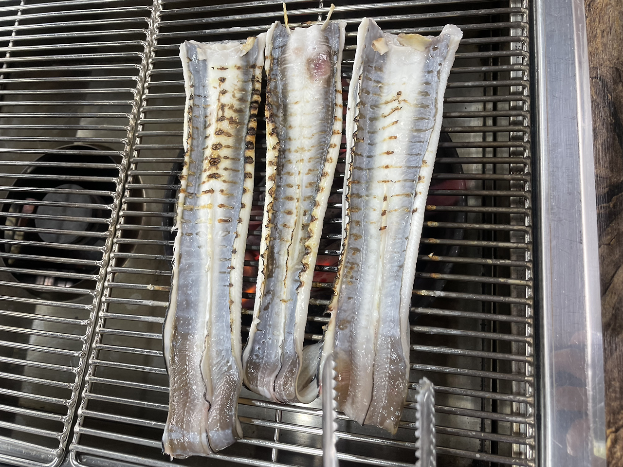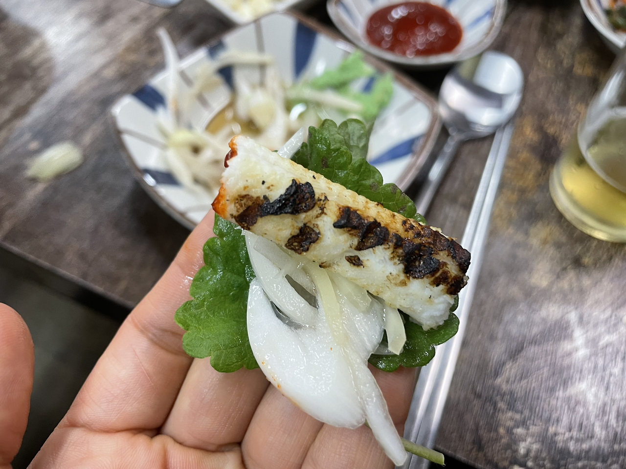 여행의 마무리는 이곳에서만 먹을 수 있다고 하는 돌장어 구이였다. 보드랍고 담백한 돌장어. 장어 특유의 기름진 비릿함이 없다도 싫어하는 사람도 있었으나, 나는 방풍나물, 양파, 생강, 매운 고추에 싸서 맛있게 먹었다. 꼬리 부분은 쫄깃하고 바삭했다!
