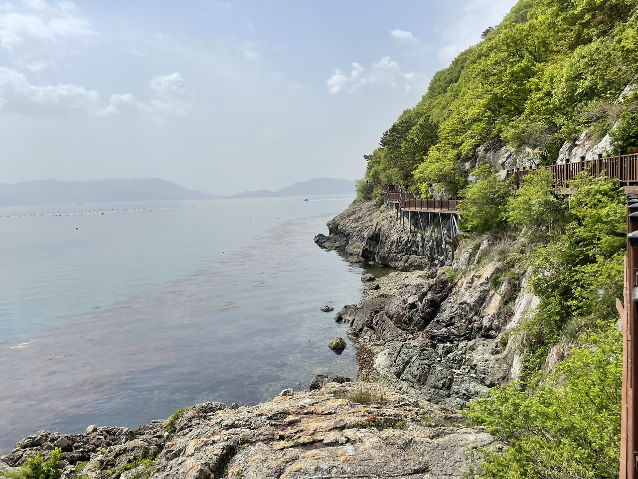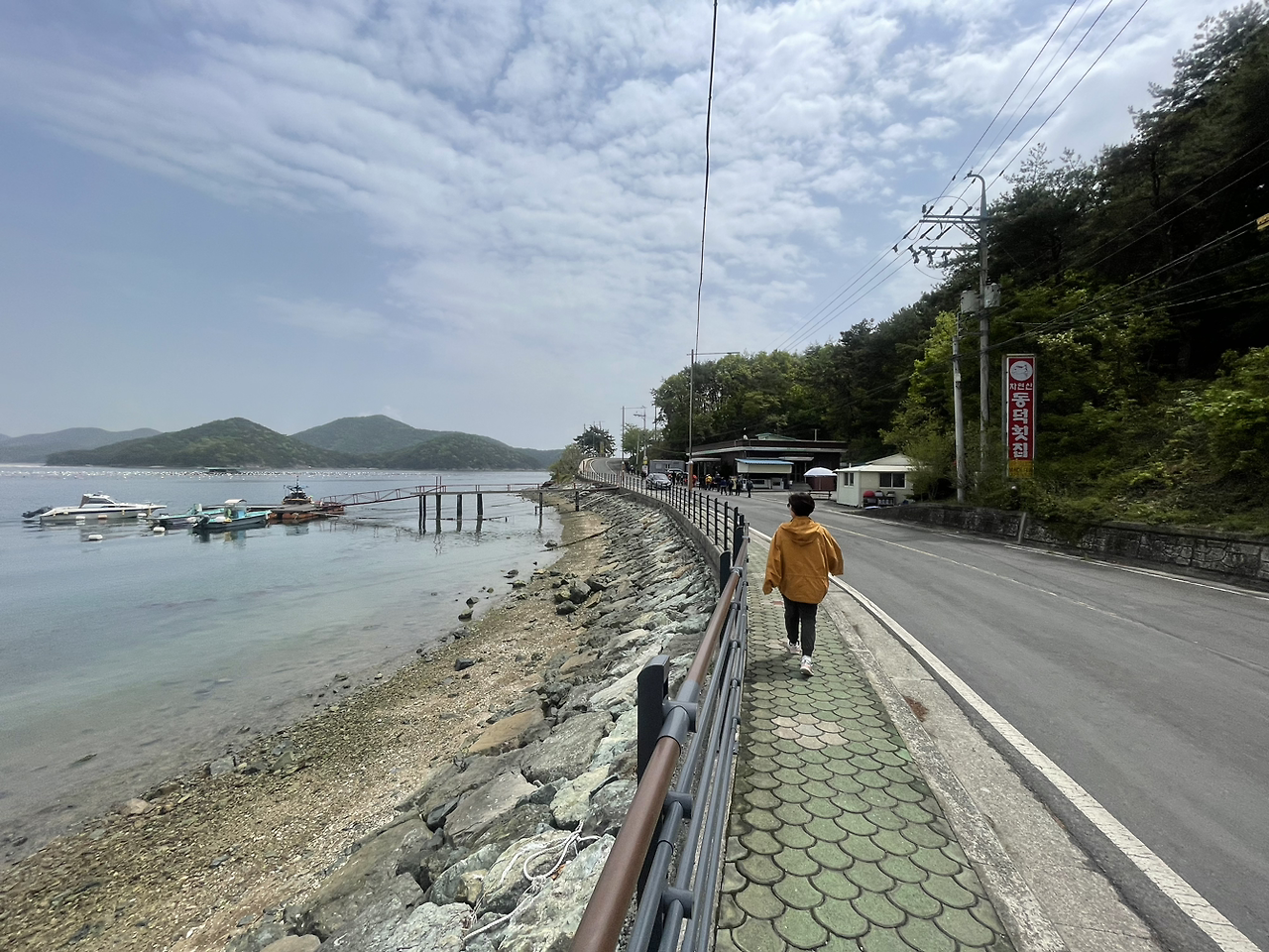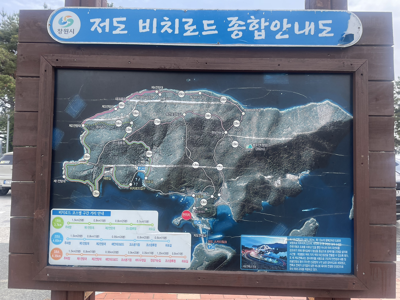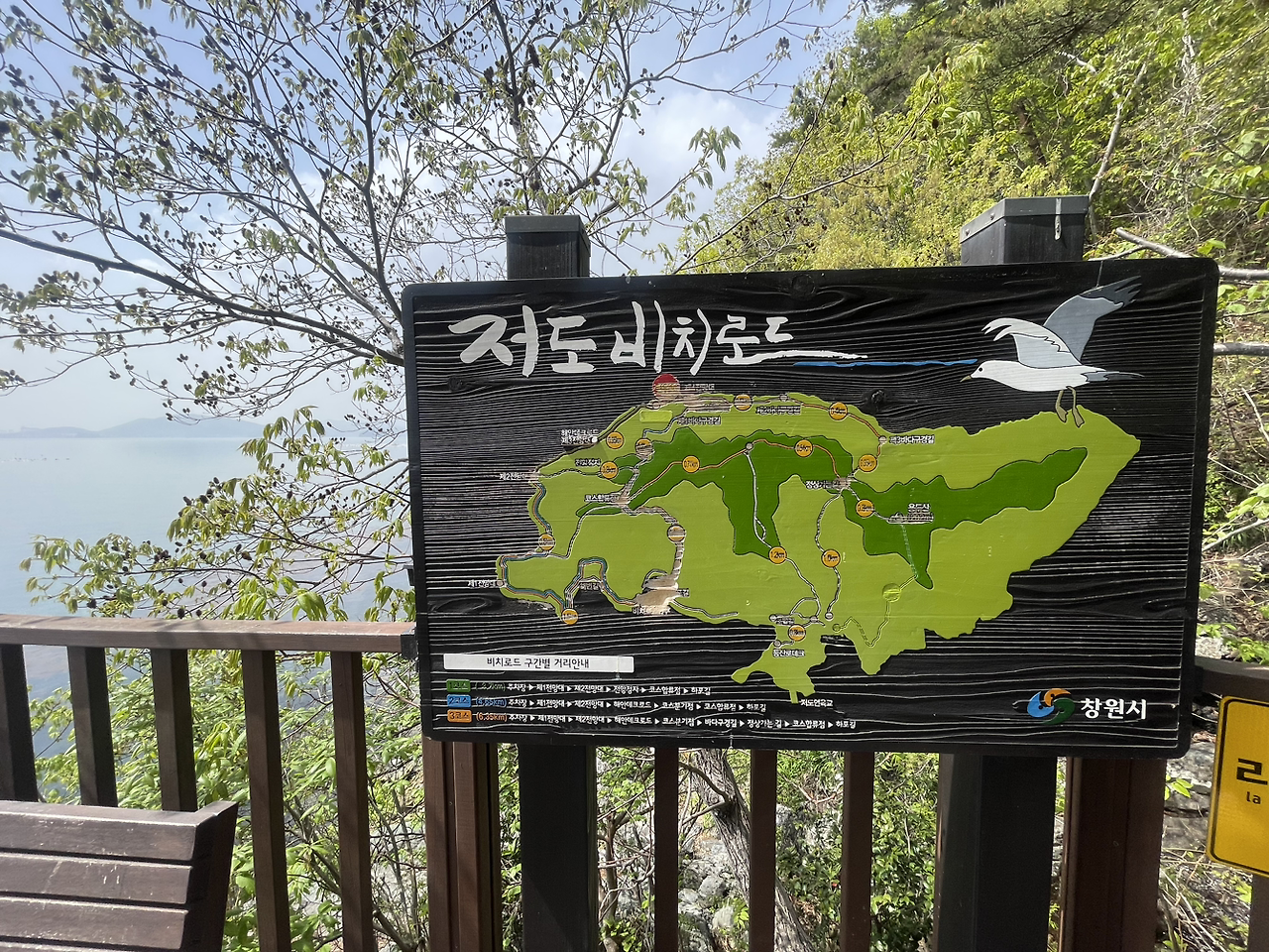 배가 불러 좀 걷자고 한 말이 계기가 되어 저도 둘레길을 걷게 됐다. 처음엔 박정희 별장이 있고 박근혜가 방문했다는 그 저도인 줄 알았다. 알고 보니 박정희 별장이 있던 곳은 경남 김해 저도이고, 우리가 있는 곳은 경남 창원 마산 저도이다. 생각지도 않게 바다 둘레길을 걷게 되었고, 풍경에 감탄했다. 산을 빙 둘러 바다가 보이는 비치로드를 2시간쯤 걸었다. 하산하여 마을 커피숍에서 아이스커피 한 잔으로 마무리하며, 목마름을 달랬다.