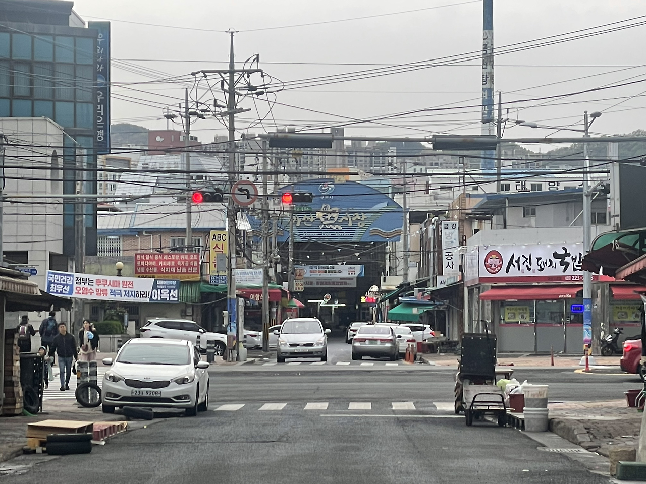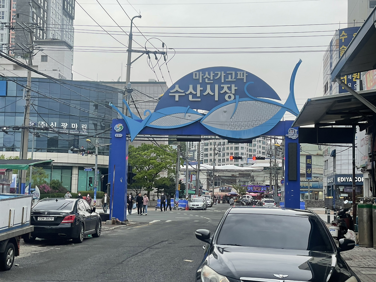오후 6시쯤 찾은 마산어시장은 고요했다. 건물 대부분이 낡고 오래되었다. 조선후기에 해로를 중심으로 발달한 마산. 일제강점기를 지나 70년대까지 호황기를 누렸다. 오래된 낡은 커다란 건물과 간판은 화려한 과거의 흔적 같은 것이었다.