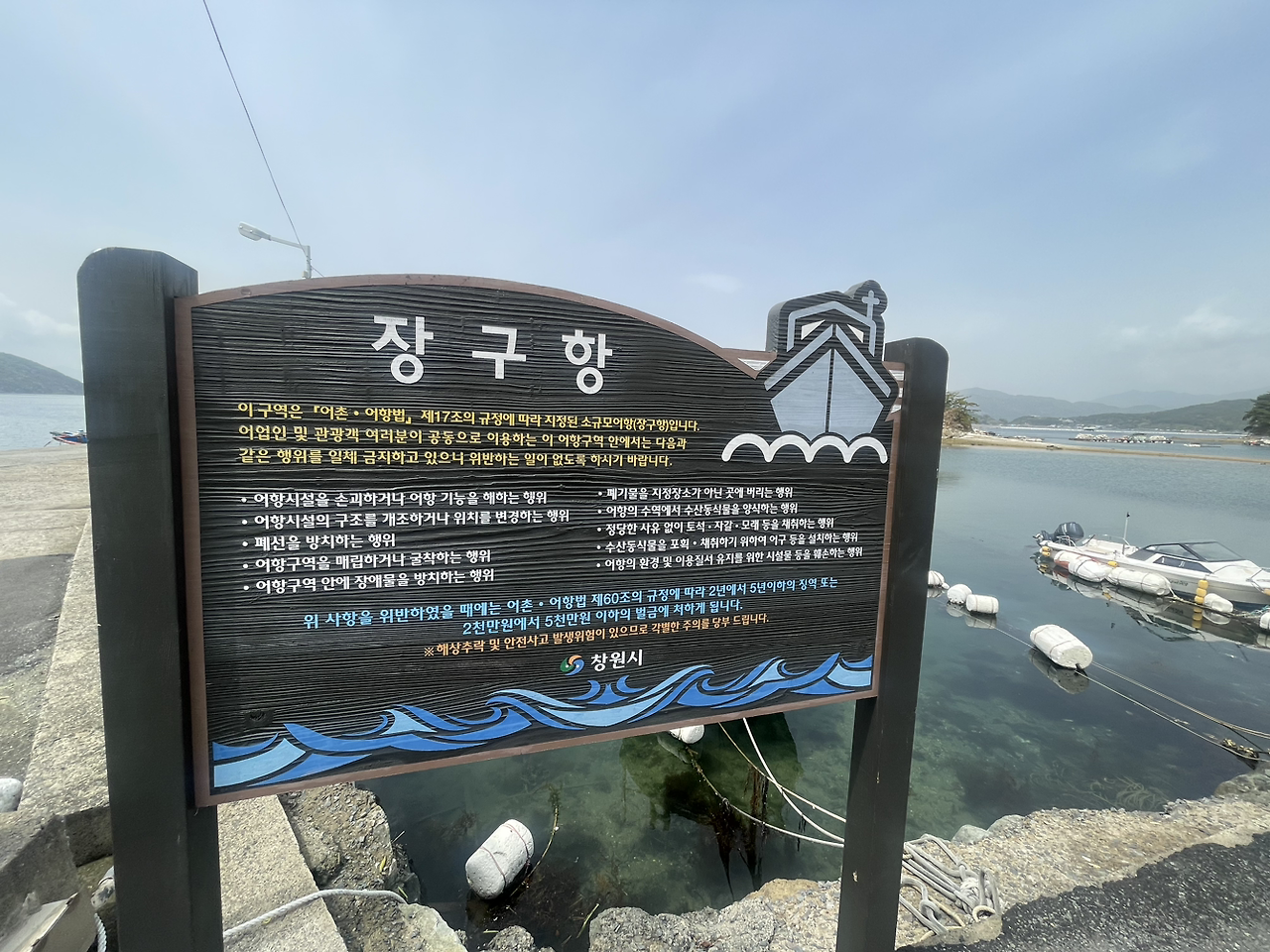 바다 구경을 하러 마산 장구항으로 갔다. 소규모의 작은 항구였다. 작은 배가 묶여 있었고, 몇몇의 낚시꾼이 보였다. 장구항의 유일한 민박집 사진도 찍어 두었다. 가까이 작은 무인도들이 듬성 듬성 펼쳐져 있고 고요해서 바다라기 보다는 강가 같았다.