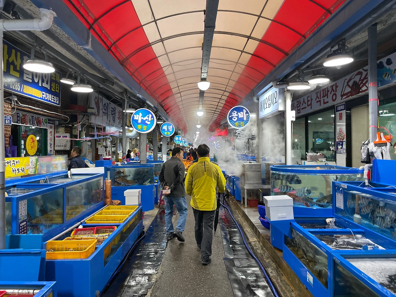 70년대 마산 어시장에 골목상권이 형성되었다. 수족관이 보급되기 시작한 90년대에 횟집 골목 상권이 형성되었다. 고요한 어시장의 풍경과 달리 횟집 골목은 활기가 있었다. 아무래도 물이 흐르는 수족관 소리덕이었는지 모르겠다. 그중의 한 곳으로 들어가서 참돔과 세꼬시를 먹었다.