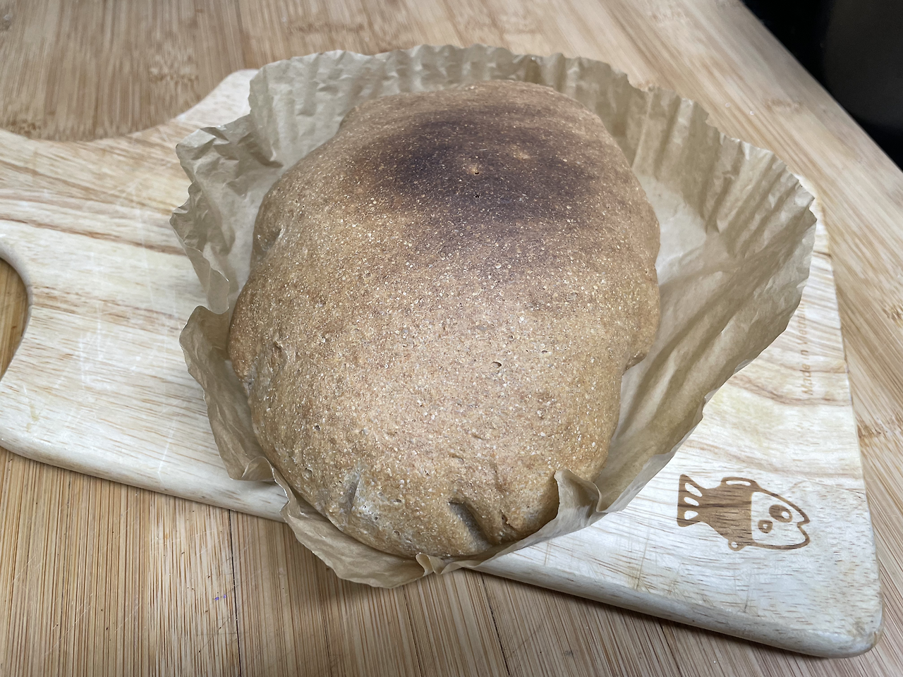 그렇게 또 얼마간이 지나고, 나는 다시 빵을 구워보겠다고 생각했다. 냉장고에 오래도록 그냥 묵혀 있는 밀가루가 아까웠던 것이 첫 번째 이유다. 나는 어렵게 만들기보다는 대강 만들고 싶었다. 밀가루 컵하나만큼에, 물은 그 80프로 정도만 담고 이스트도 작은 스푼으로 두어 번 , 소금도 그 정도 넣어 섞어 적당히 발효시켜 구우면 되지 않을까 생각했다. 나는 계량도 제대로 하지 않고 손으로 느껴지는 반죽 정도를 가늠하여 밀가루를 뭉치고, 빵이 적당히 부풀어 올랐을 때 에어프라이기에 구웠다. 온도는 200도로 20여분 구웠는데, 굽고 나니 빵 윗부분만 검게 그을렸다. 속은 떡인지 빵인지 모를 질감으로 대참사. 대 실패.