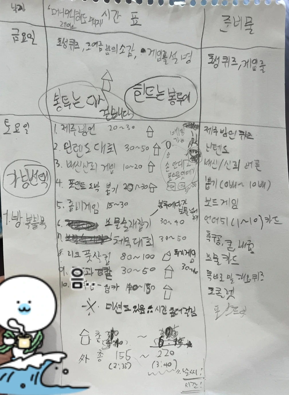 함께 노는 친구들이 생기자 이제는 놀이 계획을 만들어 쓰기 시작했다.