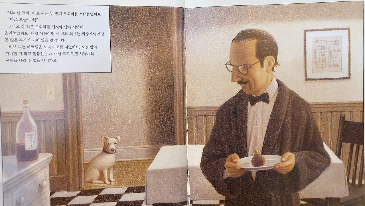 <세상에서 가장 맛있는 무화과>에서 마르셀의 꿈은, 비보 씨의 꿈과 교환된다. 인간의 꿈이 강아지의 꿈보다 더 위대하다고 말할 수 없다. 결말이 통쾌한 그림책이다.