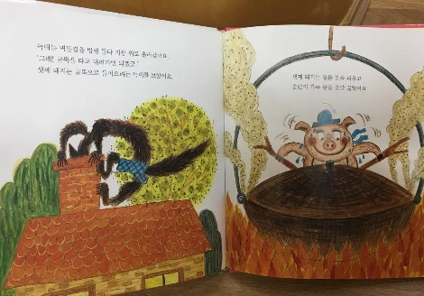 돼지를 먹기 위한 욕망에 눈이 먼 늑대는 마침내 돼지네 집 지붕 위로 올라간다. 굴뚝을 통해 맛있는 음식 냄새를 맡은 굶주린 늑대는 굴뚝 아래로 내려간다. 그러나 늑대를 기다리는 것은 커다란 솥에 담긴 펄펄 끓는 물이었다. 돼지를 먹으려던 늑대는 돼지에게 먹이가 된다.