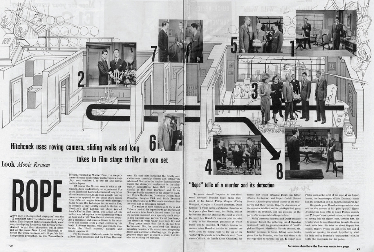 지금이야 <마법사들>이나 <러시아 방주>처럼 한 시간이 넘는 롱테이크 촬영이 어려운 일이 아니지만, 디지털카메라가 도입되기 전까지는 필름 한 통 분량인 10분 이상을 연속으로 촬영할 수 없었다. 그런 이유로 아무리 긴 롱테이크 촬영도 10분을 넘길 수 없었고, 간혹 그 이상 이어지는 영화가 등장하긴 했지만 대부분은 히치콕 감독이 <로프>에서 한 것처럼 카메라 렌즈 앞을 피사체가 잠시 가리며 자연적인 암전을 만드는 식으로 속임수를 쓸 수밖에 없었다.