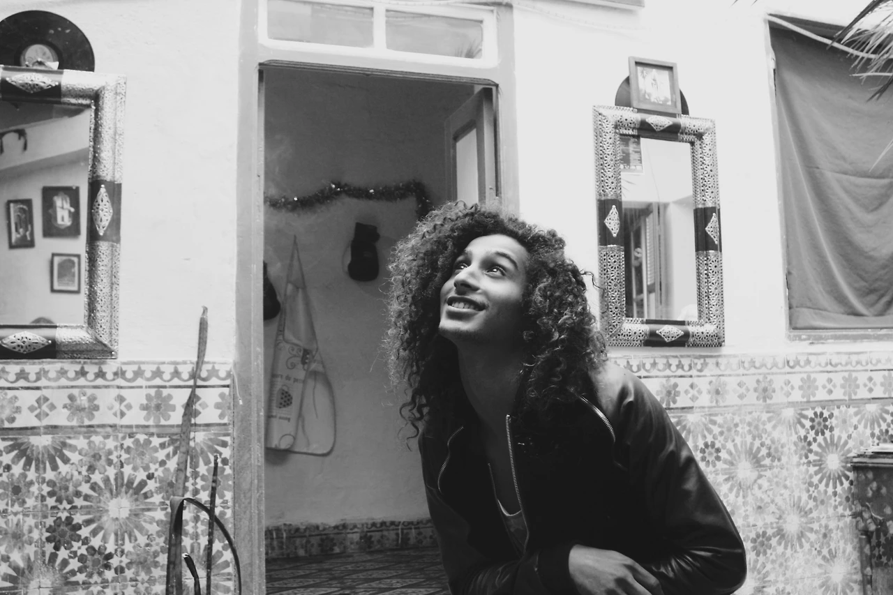 운명처럼 나를 부르는 듯한 매혹적인 문 하나를 발견하곤, ‘이게 모로코지!’라는 말을 내뱉으며 신비로운 푸른 빛이 감도는 문에 달린 황금색 문고리를 세개 당겨 문을 열었다. 눈 앞에는 하얀 외벽과 청록색 타일 위로 물과 햇살의 혼합물이 쏟아져내리고 있었다. 물의 출처는 분수임이 확실했으나, 유독 눈이 부신 햇살은 출처가 불분명했다. 햇살의 흔적을 따라 시선을 옮겨보니 구멍 뚫린 천장, 그 위로 비현실적인 구름과 여러 가닥의 햇살이 천장 벽화처럼 떡하니 자리 잡고 있었다.ㅡ천장이 뚫린 정원이 있는 구조는 모로코 전통가옥 양식인 리야드Riad이다.ㅡ