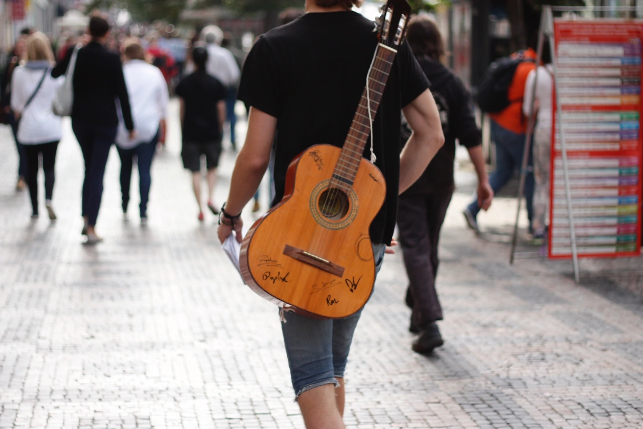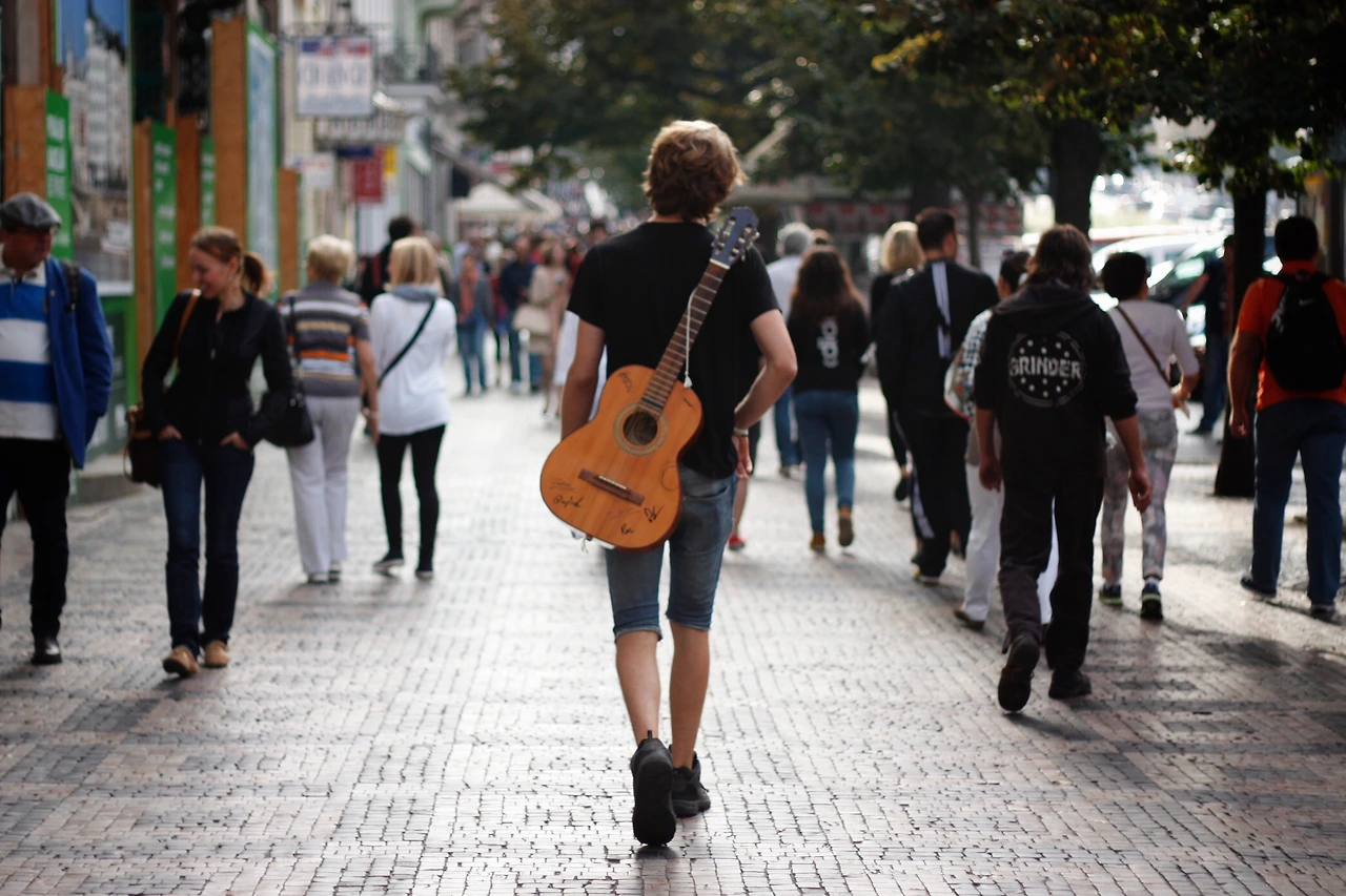 프라하 바츨라프 광장Vaclav Namesti에서 만난 버스커였는데, 그는 어디선가 기타를 메고 갑작스레 등장했다. 기타 케이스나 전용 멜빵도 없이, 어디서 구해온 지 모를 자유로운 끈으로 기타를 묶어 어깨에 둘러맸다.