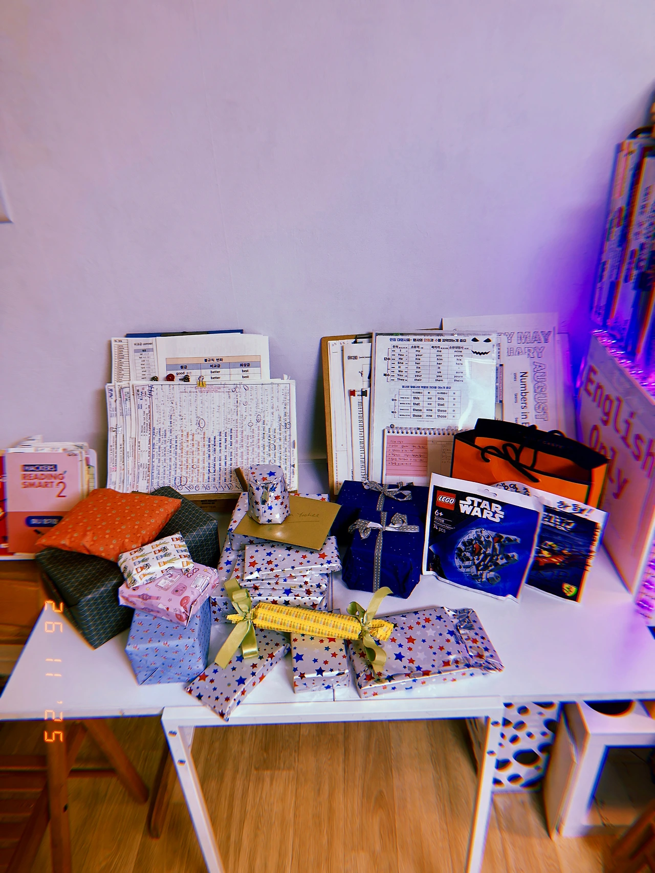 저녁 요리와 율 생일 케익 동시에 만들어 늦은 저녁 먹었다. Harry Potter 사촌 더들리처럼 선물 개수에 집착하는 잭 따라 각자 열심히 포장한 선물 오픈식이 밤 11시까지 이어졌다. 학교 친구들에게도 레고 선물 받아온 Birthday boy. 오랜만에 레고 쌓아두고 조립에 심취되다. #기말고사기간