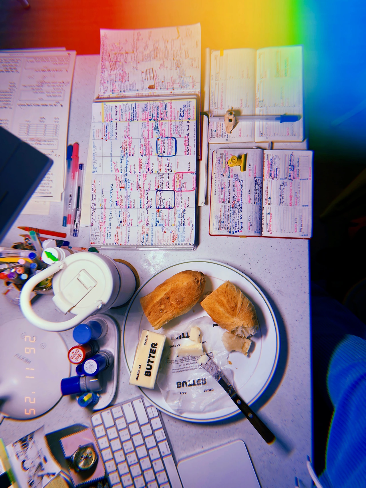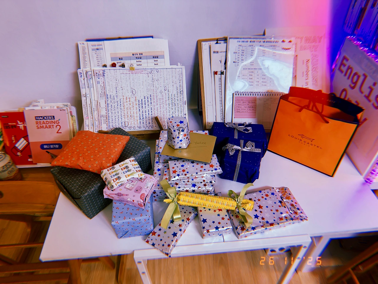 율 생일이다. 웬만해선 뭘 갖고 싶다고 말하지 않는 어린이를 위해 잭은 올해도 새벽에 풍선 열심히 불어서 늘어놓고 선물 포장도 이것저것 하고 영국에서 온 선물도 크리스마스처럼 쌓았다. 난 퇴근 후 미니 케익 만들고 <저승사자패딩>으로 퉁. 오늘도 ‘국내산 강력분’의 대단한 쫄깃함과 바삭함 음미하는데 앉은자리에서 바게트 하나 버터 올려 먹는 거 보고 잭이 놀라며 나갔다. #W26Nov2025