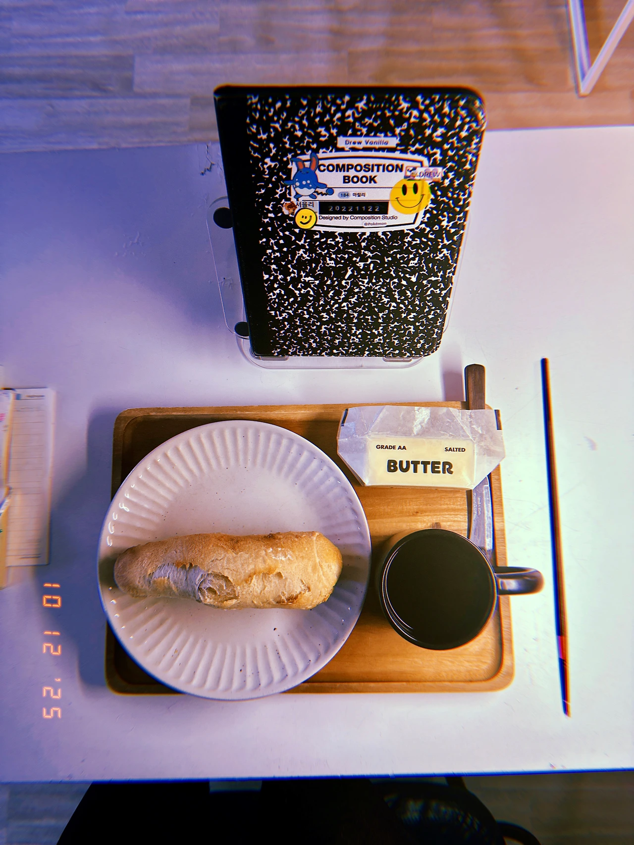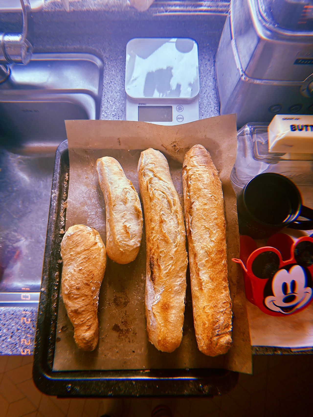 뜨—거울 때 겨우 찢어서 차가운 벽돌 버터 한 덩이 조사조사 조사 올려서 몽둥이 바게트 2개에 에스프레소 for BF. X-mas 조명은 실실 늘어나고. 한꺼번에 크게 일 저지르지 않고 매일 조금씩에 강하므로 조금씩 계속 설치 중.✨ #Sunny8 #W10Dec2025