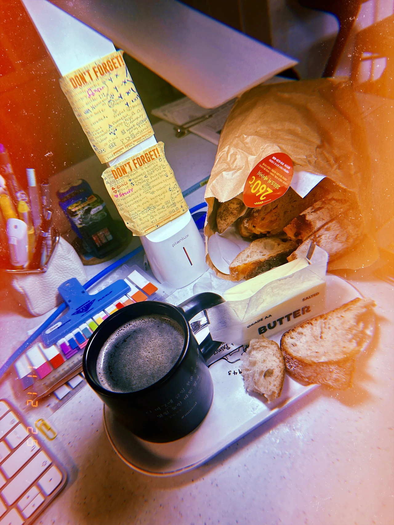 오랜만에 (눈 뜨는 순간 배고파하는 잭이 매일 만들어 주고 출근) 율 아침 기내식 냄비밥 해서 내가 어릴 때 젤 좋아했던 <버터 간장 계란밥> 만들어 잠 들깬 내 몸에도 넣어주고 율 보다 내가 먼저 ‘등교’했다. #8AM