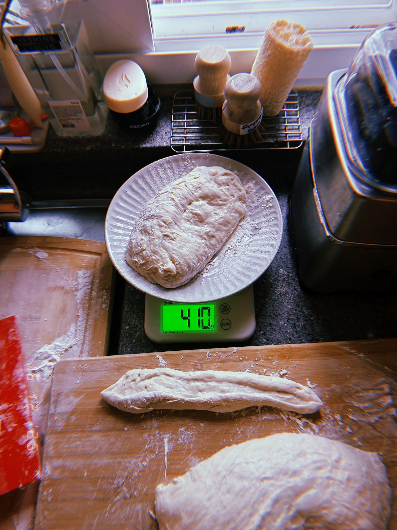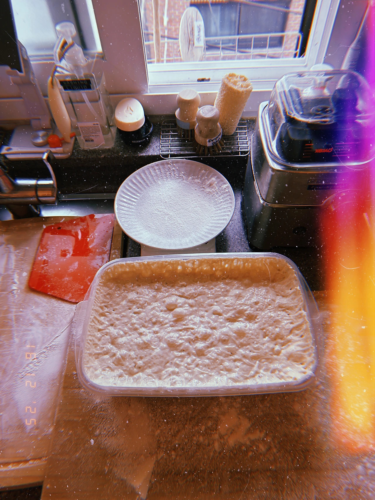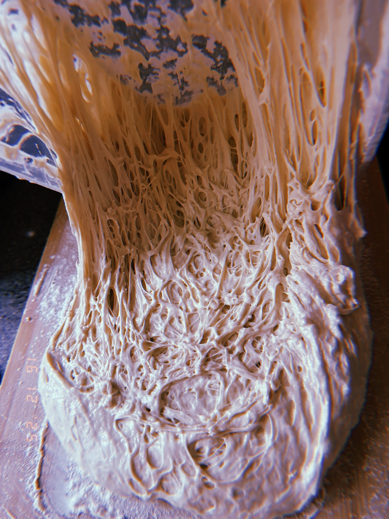 24+12=36시간 발효한 반죽. 숨이 조금 내려간 듯하고 기포는 왠지 좀 더 징그러워졌다.