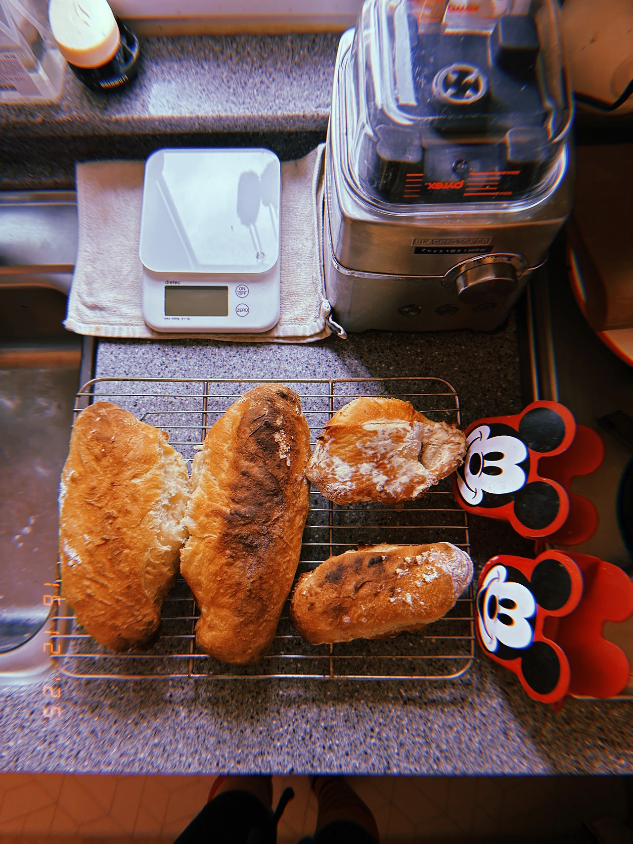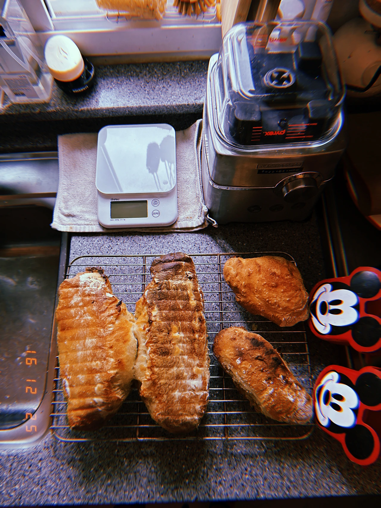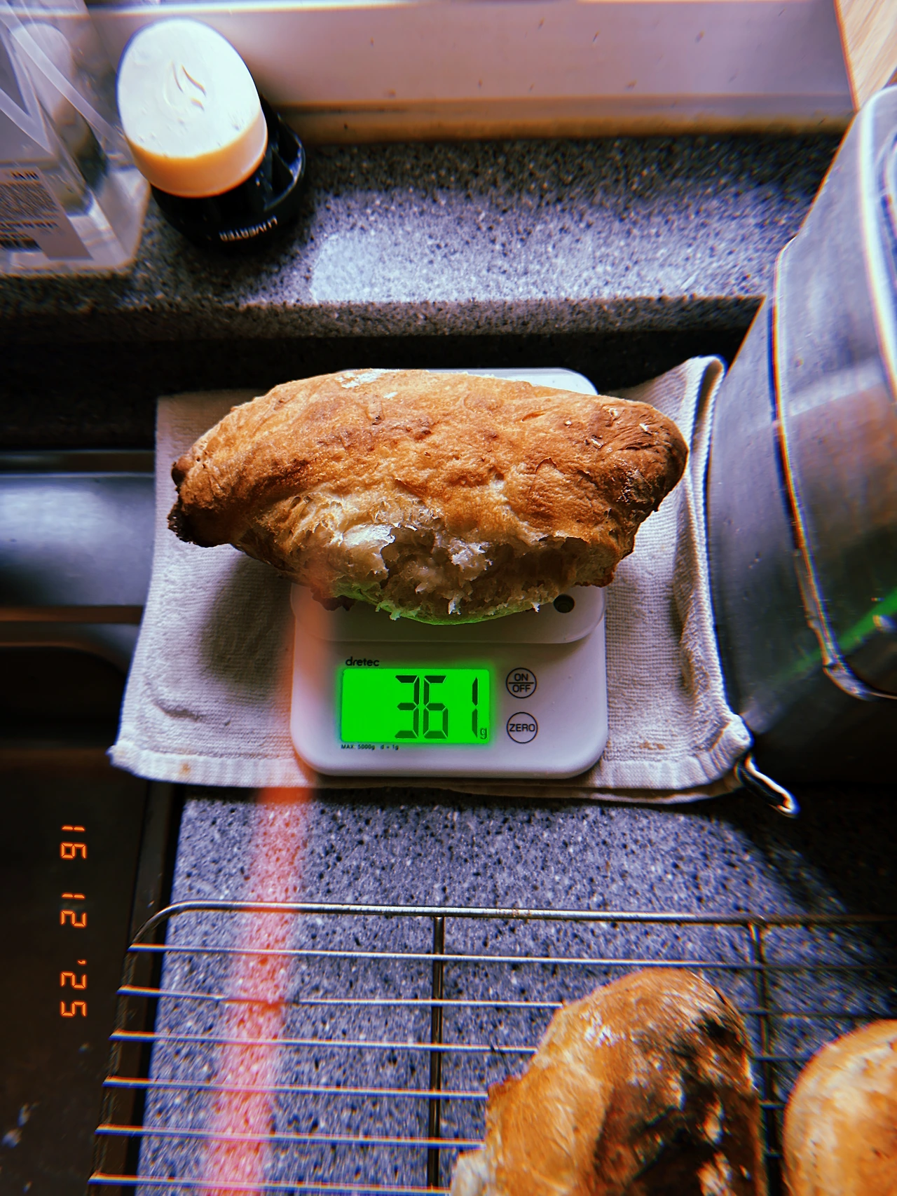 결론은, 이탈리아 피자 장인용 밀가루 Caputo+프랑스 정통 바게트용 T65 조합은 (본의 아니게 평소 2배로 발효해선지) 그동안 구운 바게트 중 ‘겉바’는 기본. 가장 부드러운 쫄깃함 (질긴 쫄깃 말고) 흡사 ‘크롸쌍’의 결보다 더 겹진 계단이 보이는 거다. 아이폰으론 안 찍히네.. 차가운 버터를 속 결 사이사이에 끼워서 무한 리필했다. 잭이 눌러준 2샷 커피 더 식기 전에 마시고. #Rauny6 #T16Dec2025