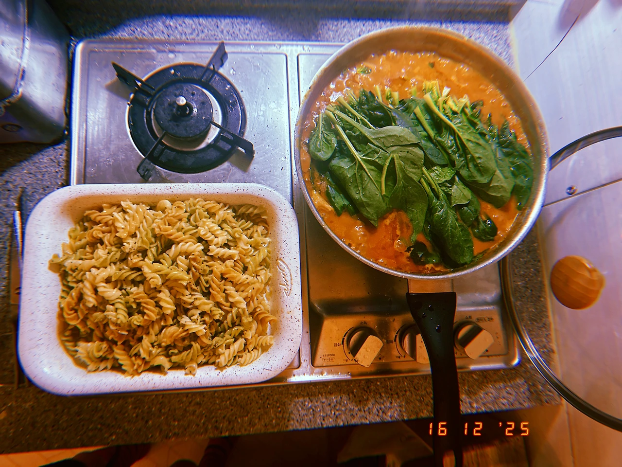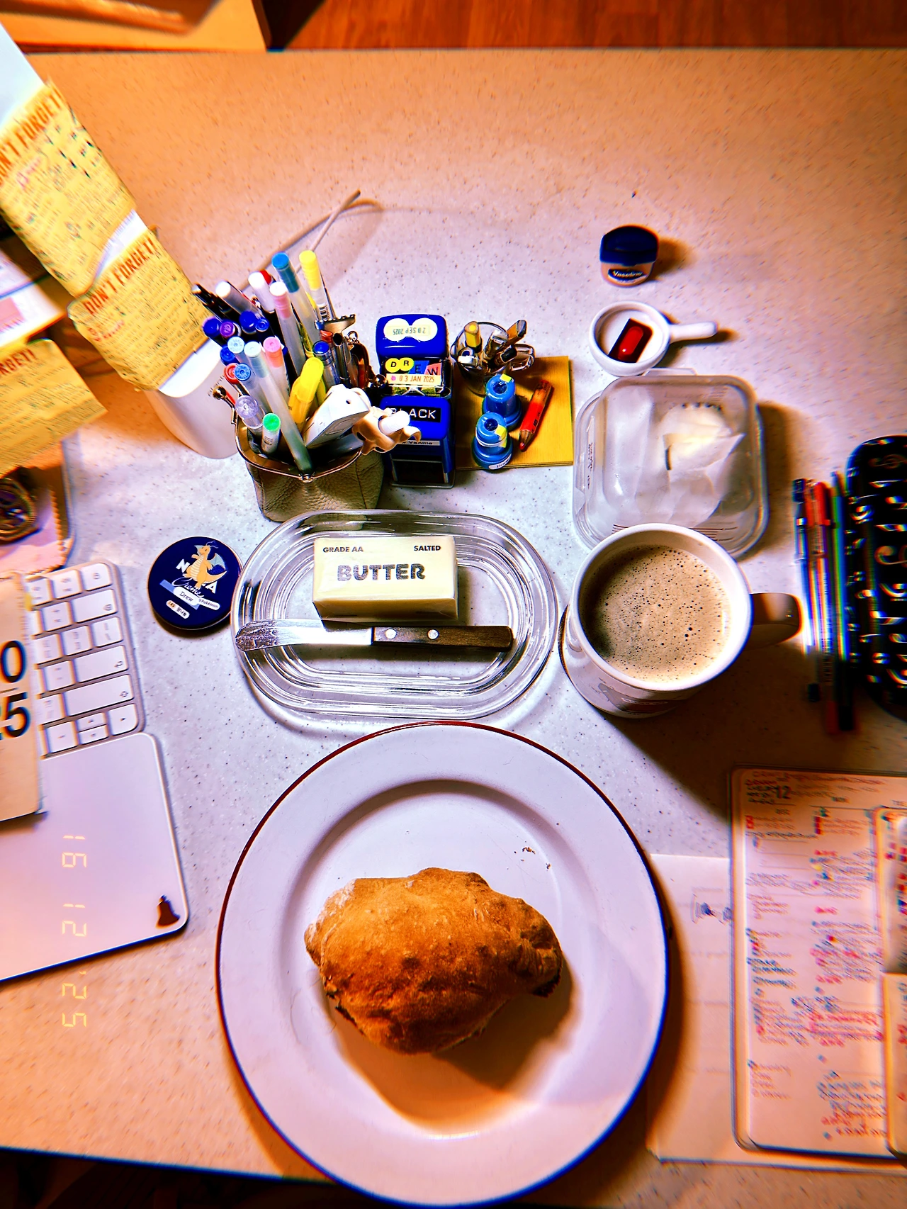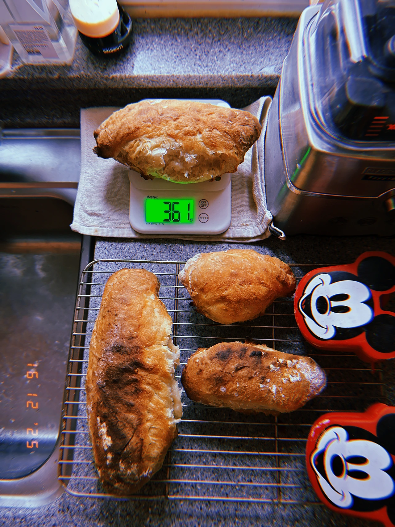결론은, 이탈리아 피자 장인용 밀가루 Caputo+프랑스 정통 바게트용 T65 조합은 (본의 아니게 평소 2배로 발효해선지) 그동안 구운 바게트 중 ‘겉바’는 기본. 가장 부드러운 쫄깃함 (질긴 쫄깃 말고) 흡사 ‘크롸쌍’의 결보다 더 겹진 계단이 보이는 거다. 아이폰으론 안 찍히네.. 차가운 버터를 속 결 사이사이에 끼워서 무한 리필했다. 잭이 눌러준 2샷 커피 더 식기 전에 마시고. #Rauny6 #T16Dec2025
