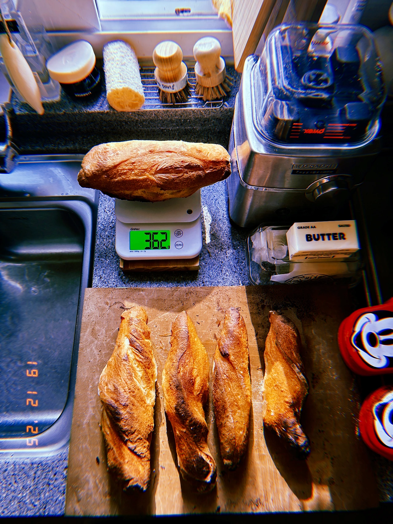 와우 #맥반석 파워… 평소와 똑같은 순서와 온도로 예열 1시간 하며 중간쯤 (어젯밤 도착한 맥반석 생각나!) 넣고 잘 발효된 반죽 잘라서 오븐 온도 (250˚c) 15분 굽고 뒤집어서 (같은 온도로) 10분 더. 짙은 브라운 색깔이 확연히 달랐고 더 바싹하네… 바삭함의 끝은 어디까지인가ㅎ