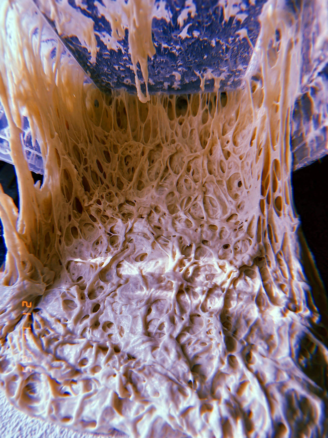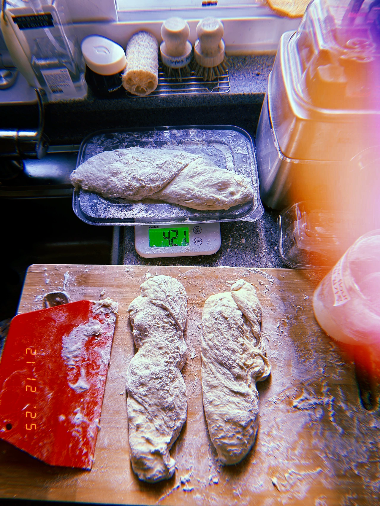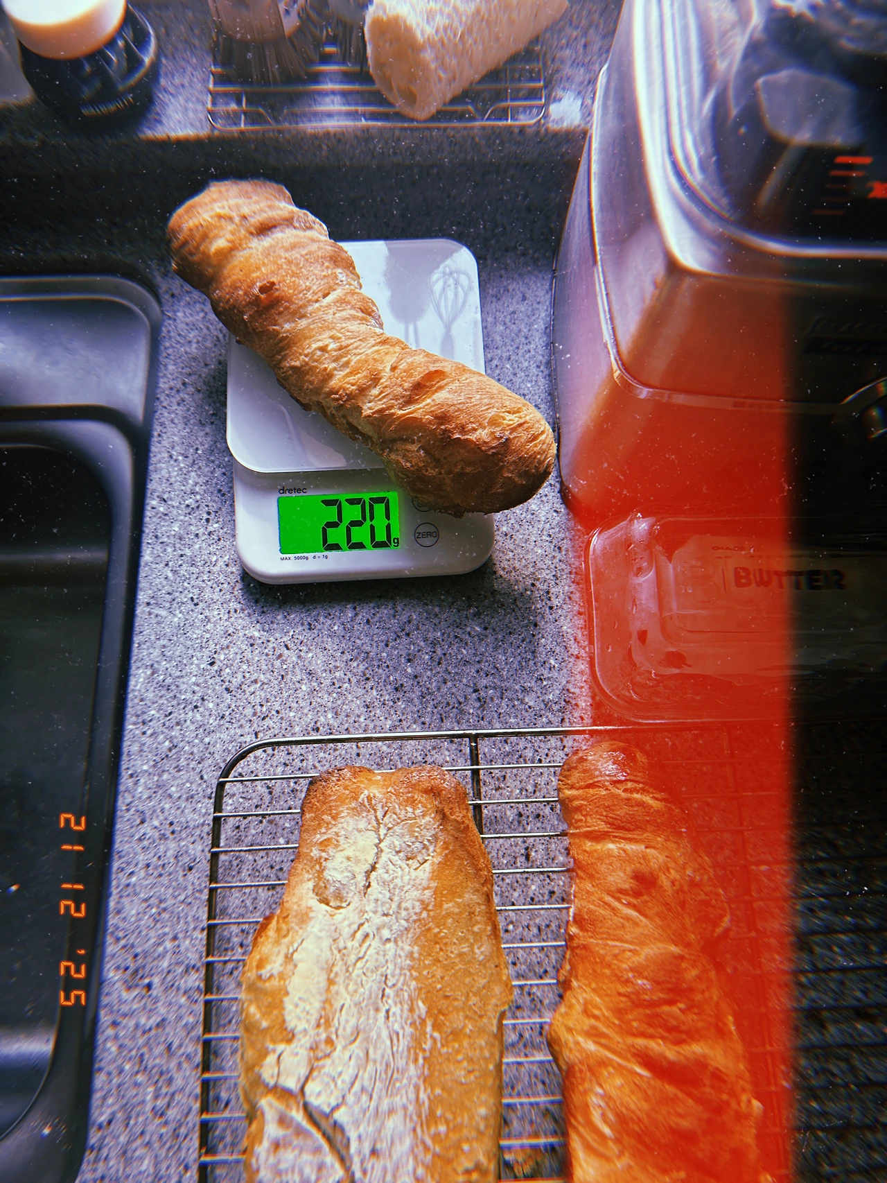 도토리묵 덩어리의 몽글함에서 선 넘은 <무엇보다 진-반죽> 또 도전. 까칠한 연인 다루는 마음으로 그러나 겉으론 스크래퍼로 퍼. 버. 벅. 여기저기 들러붙어서 다시는 질게 하지 않으리라 다짐하면서. <초겉바속촉부 드럼>에 벽돌 버터 1.2개로 일단 stop.. 420g 진-반죽이 구워져 51g 가벼워졌다. #Sunny0 #Sn21Dec2025