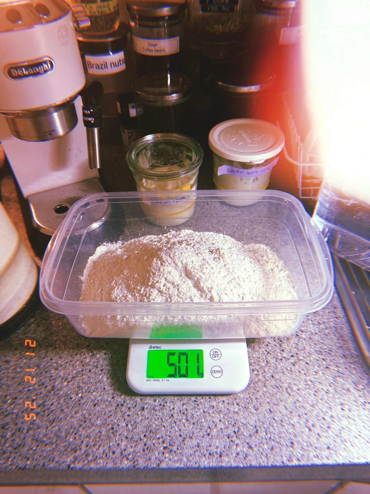 #Sundaymorning 새로 시작한 르방, 어제보다 두 배 부풂. 가장 잘 키워진다는 통밀 100%와 박력분 둘 다 똑.같.이. 두 배 부풂.