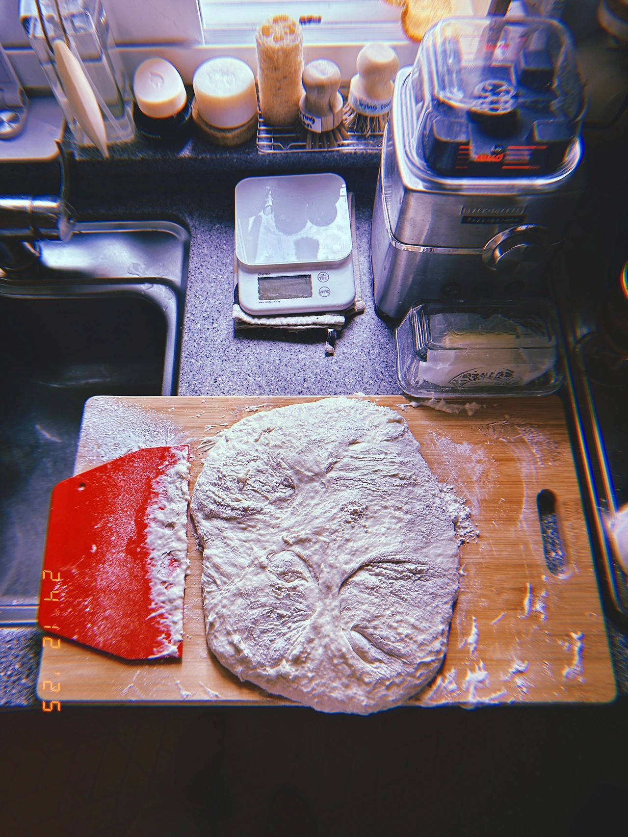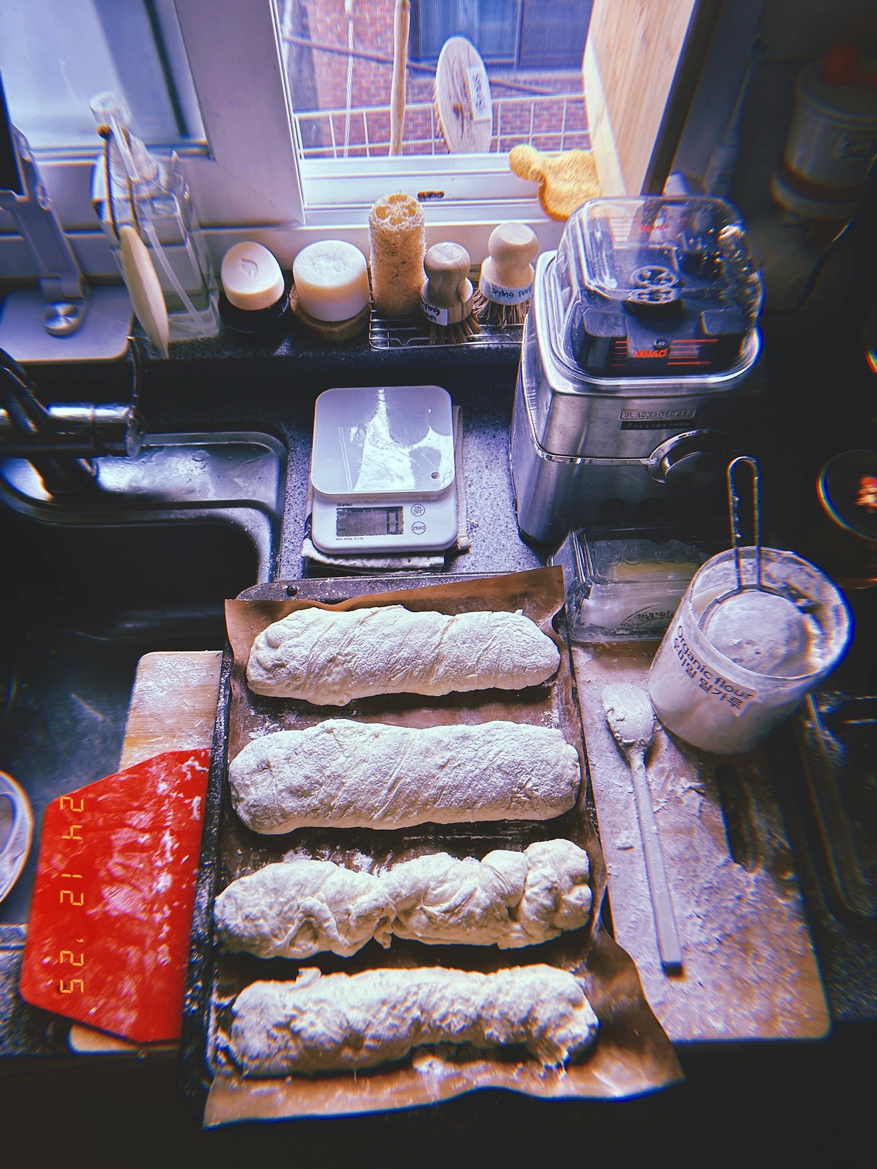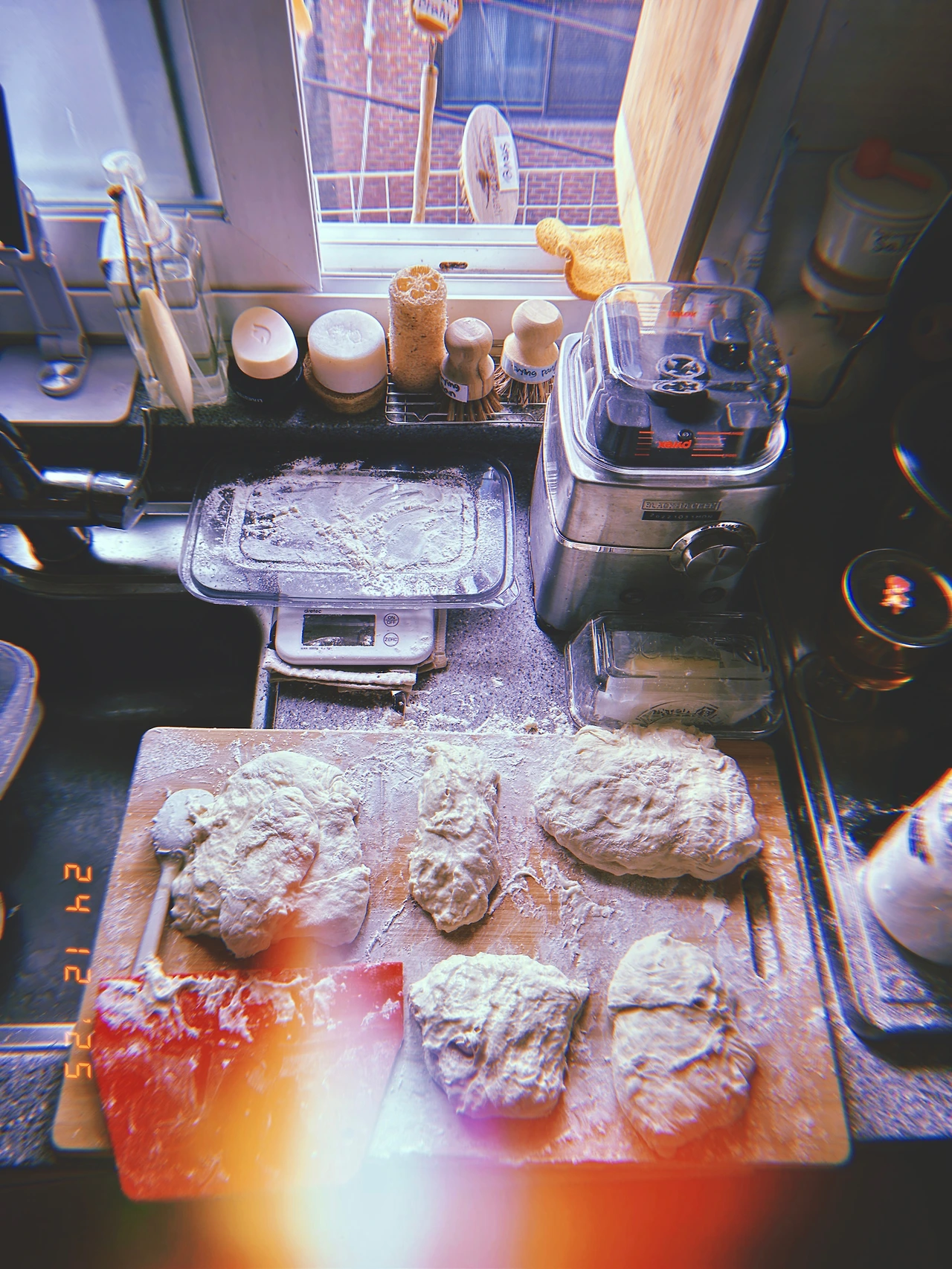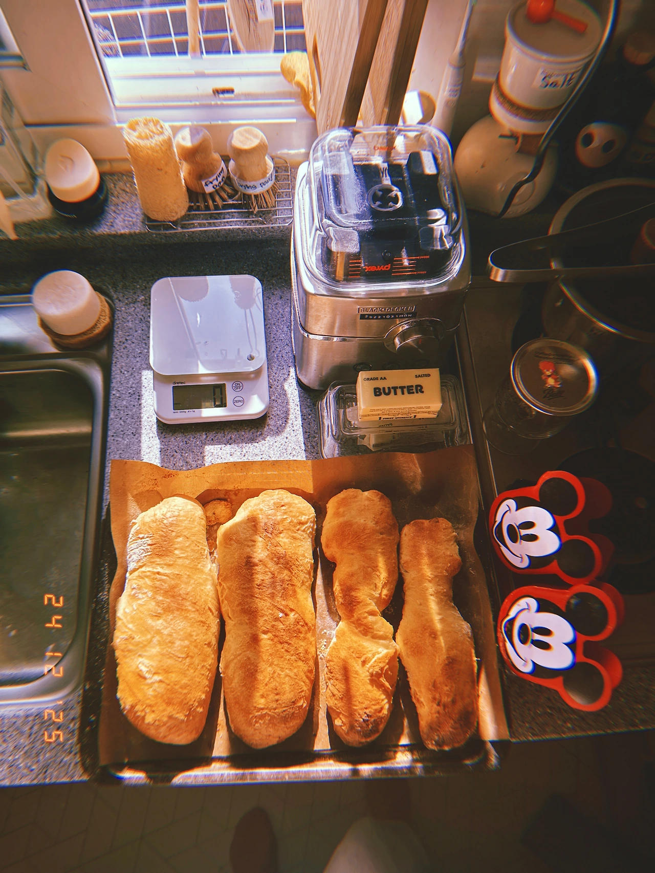 다.시.는 마치 살아있는 것처럼 도마 밑으로 질질 흘러내리는 반죽 하지 않으리라 덕지덕지 엉망 된 손으로 홍콩 무술 연마하듯 재빠르게 끌어올리기 100번… 손과 머리로 다짐해 놓고, 어머’ 브라운도 잘 안 나와서 오븐에 무려 10분 더 굽고 나서, 차가운 버터 올려 먹으며 입은 즐겁네… 실온에서만 키운 과하지 않은 시큰한 르방 향까지… #XmasEve #Sunny3 #W24Dec2025