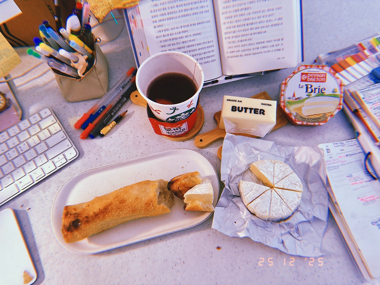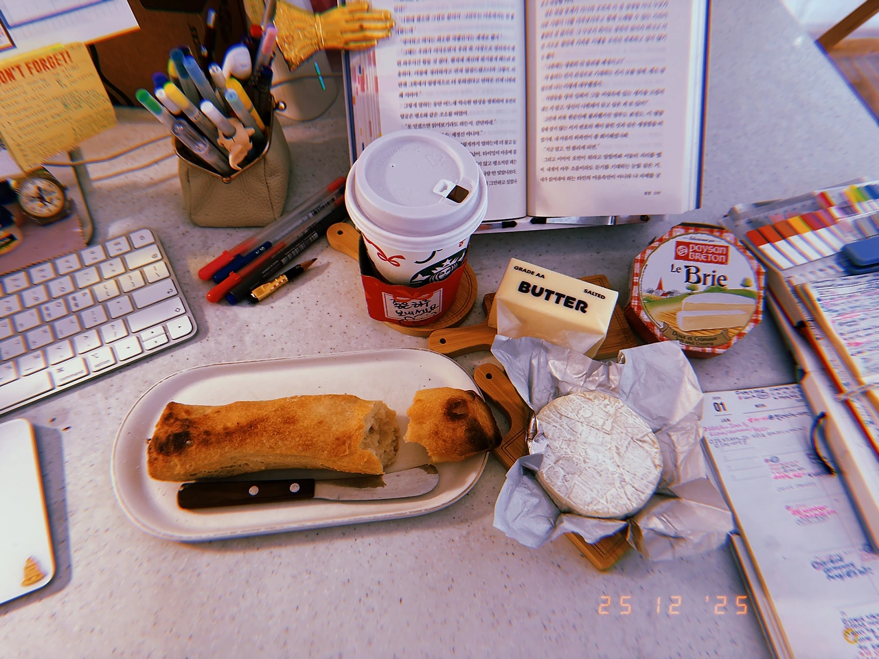 빵 굽기 시작하면서 2시간 동안 크리스마스 선물 오픈식. 영국에서 온 우리 어린이 선물 끝도 없고, 얼마 전 3주 넘게 걸려 결국 취소했던 레고까지 (취소를 취소함) 덤으로. 내 선물의 반은 <치즈>와 <치즈 도마>와 <책갈피> 나를 너무 잘 아시는 영국 으르신들. -o- #과식시작 ☕️ #R25Dec2025