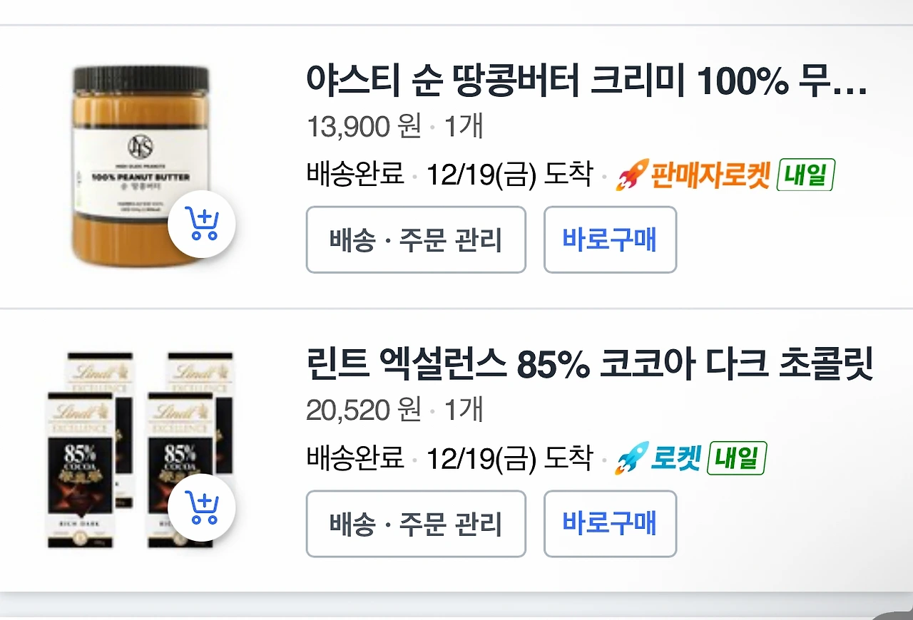 12/19(F) 피넛버터와 초콜릿 받지 못했습니 다. 너무 늦어져 확인하니 온 것으로 되어있습니다!!
