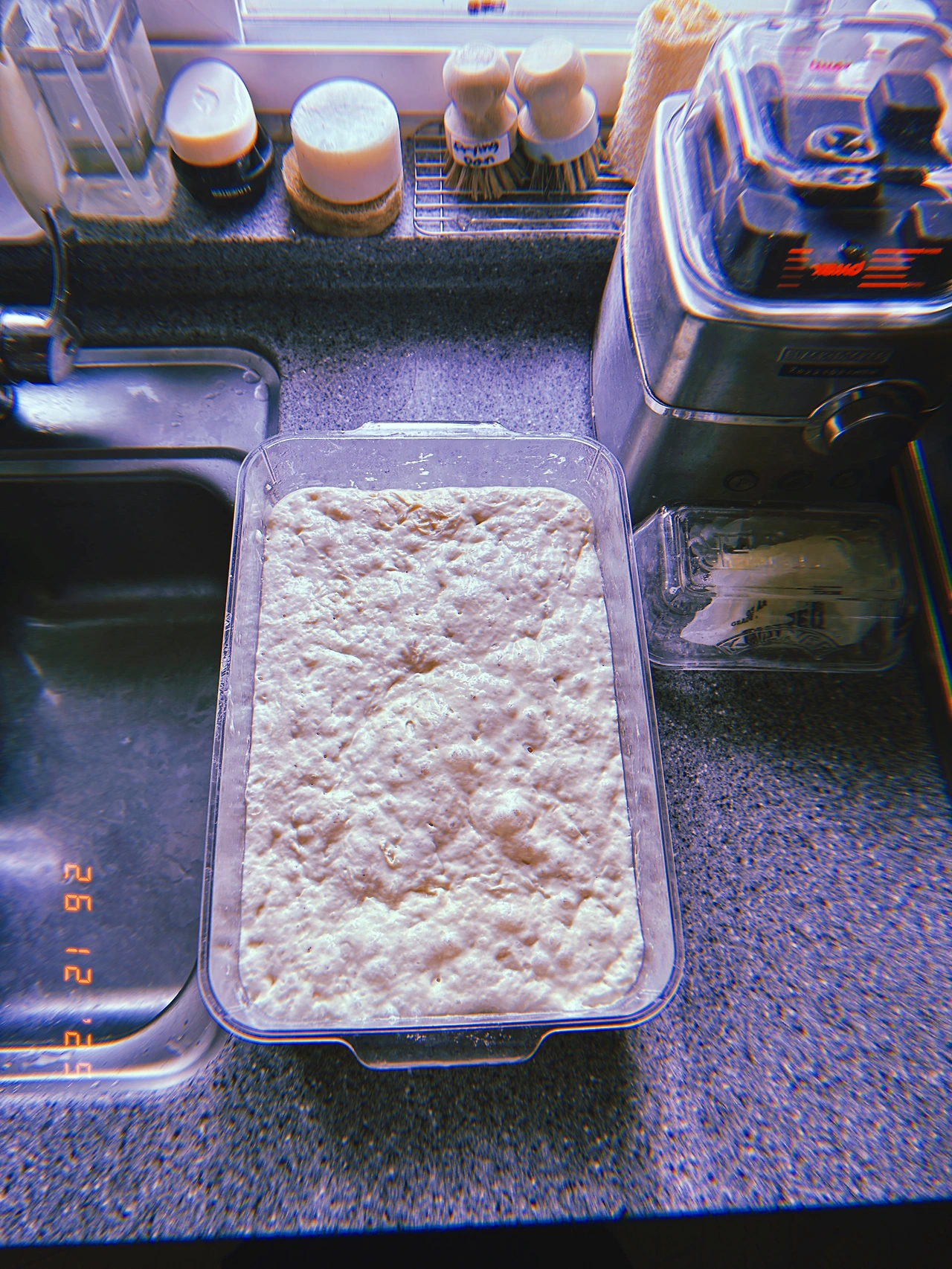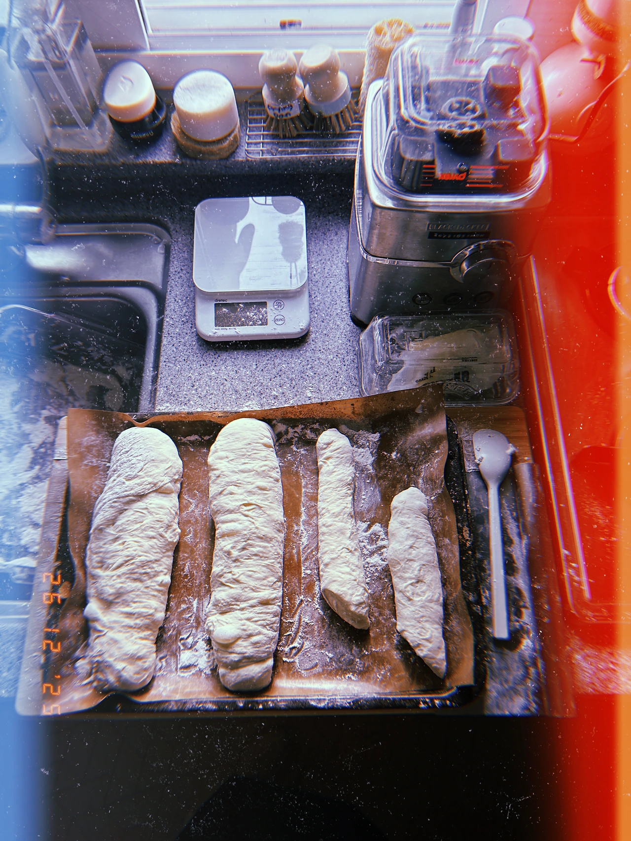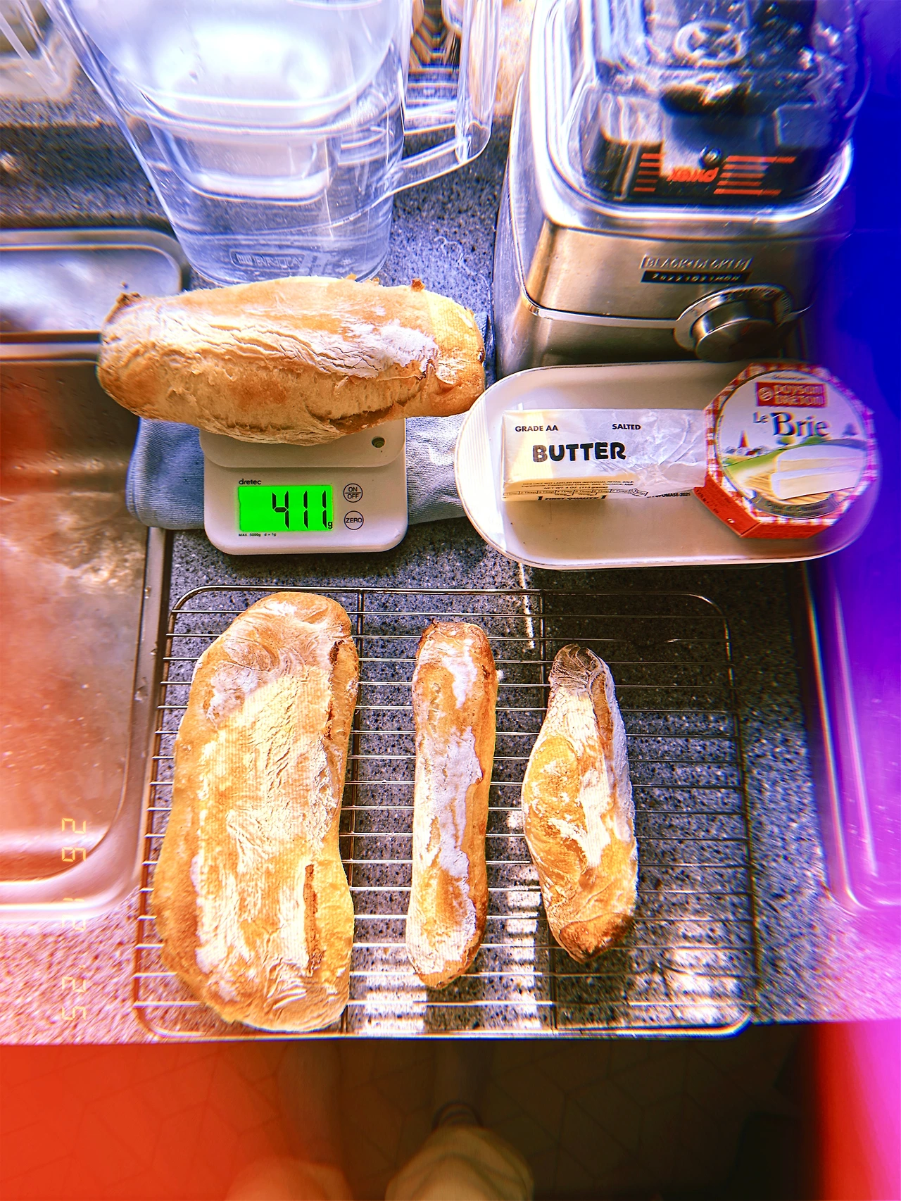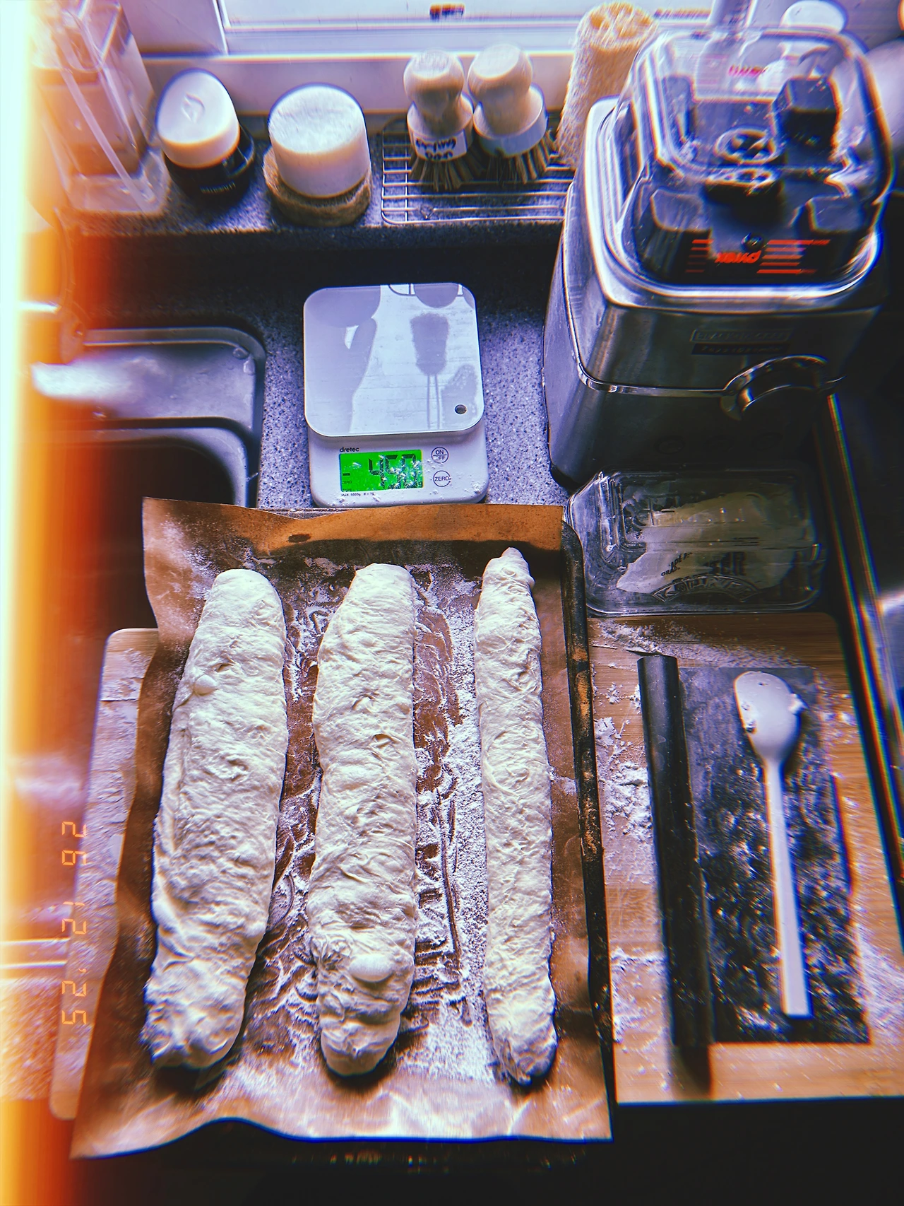 약 450g 덩어리 3개. 길게 줄 세웠다가 샌드위치 고기 잘 안 들어간다고 어떤 영국 사람이 뭐라 할까 봐’’ 다시 짧게 구겨서 굽. 모유에서 분유로 넘어갈 때 모유 양 줄이듯 드라이 이스트 양 매일 조금씩 줄이고 르방이들 비율 높이는 중. 맛은 둘 다 좋음. #Sunny-7 #F26Dec2025