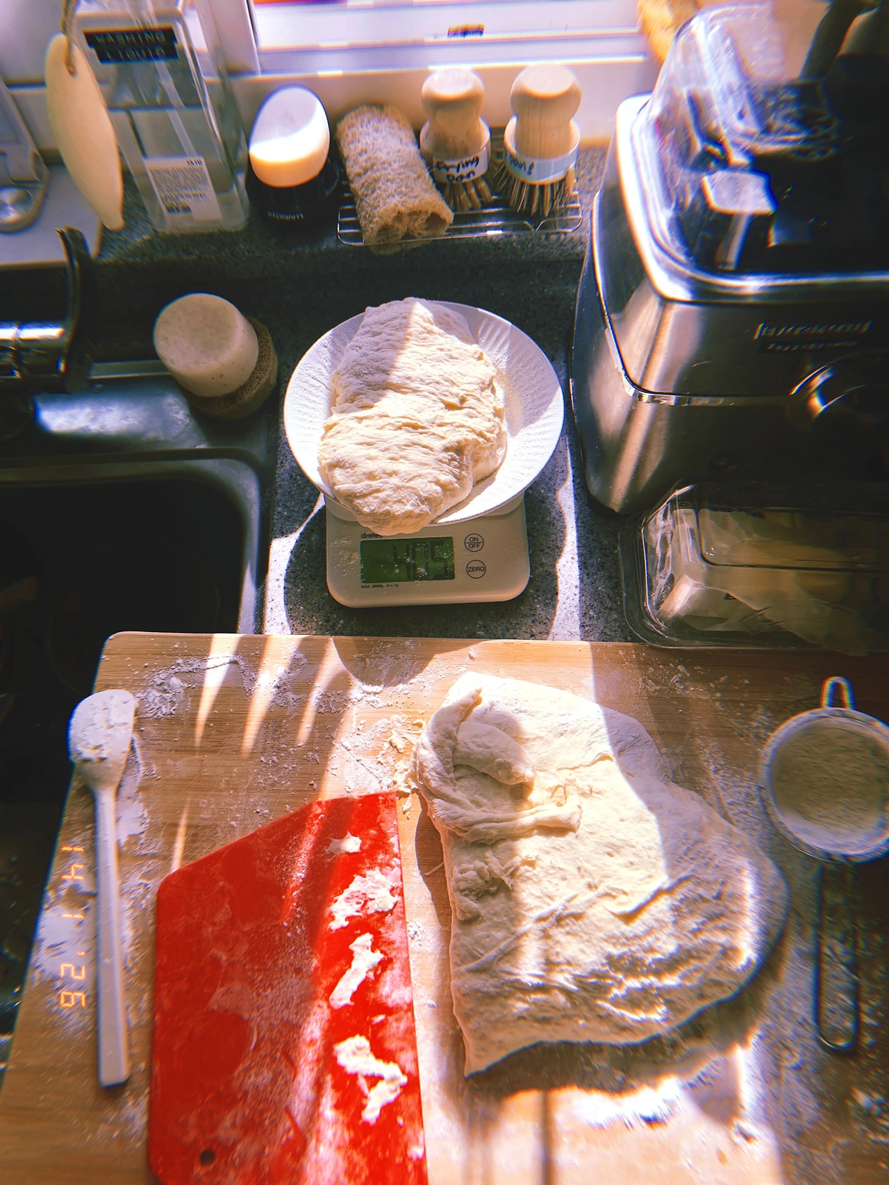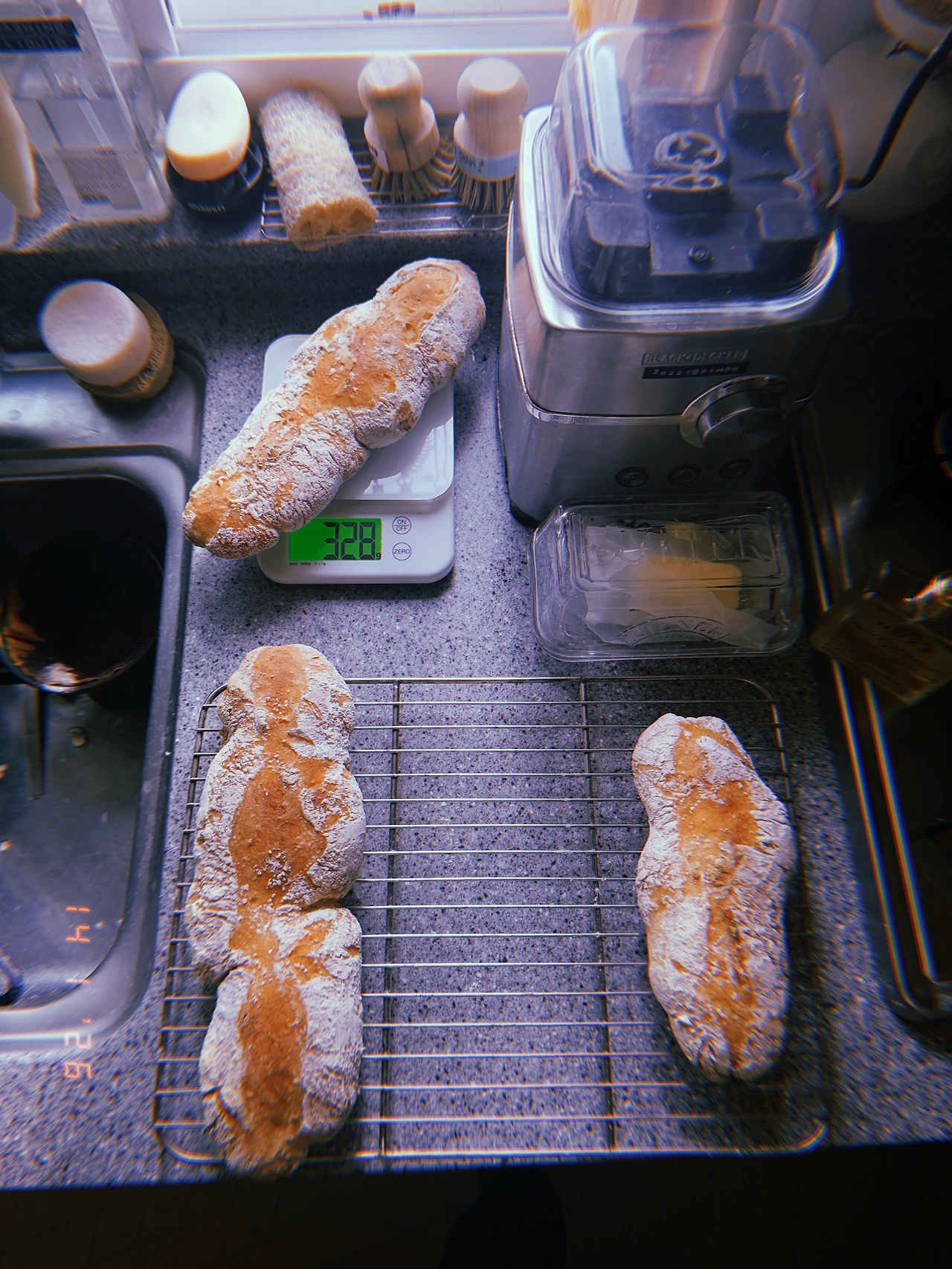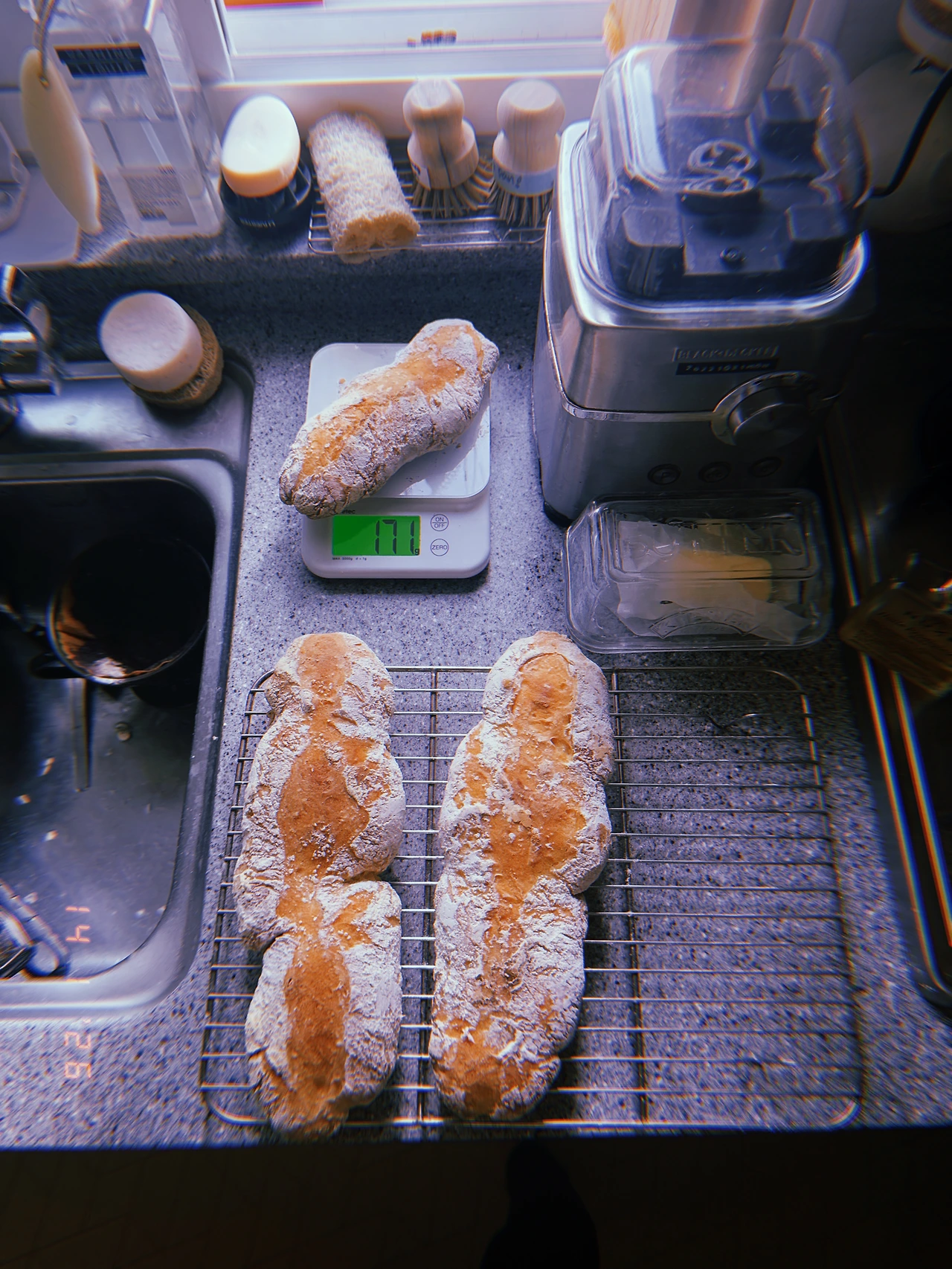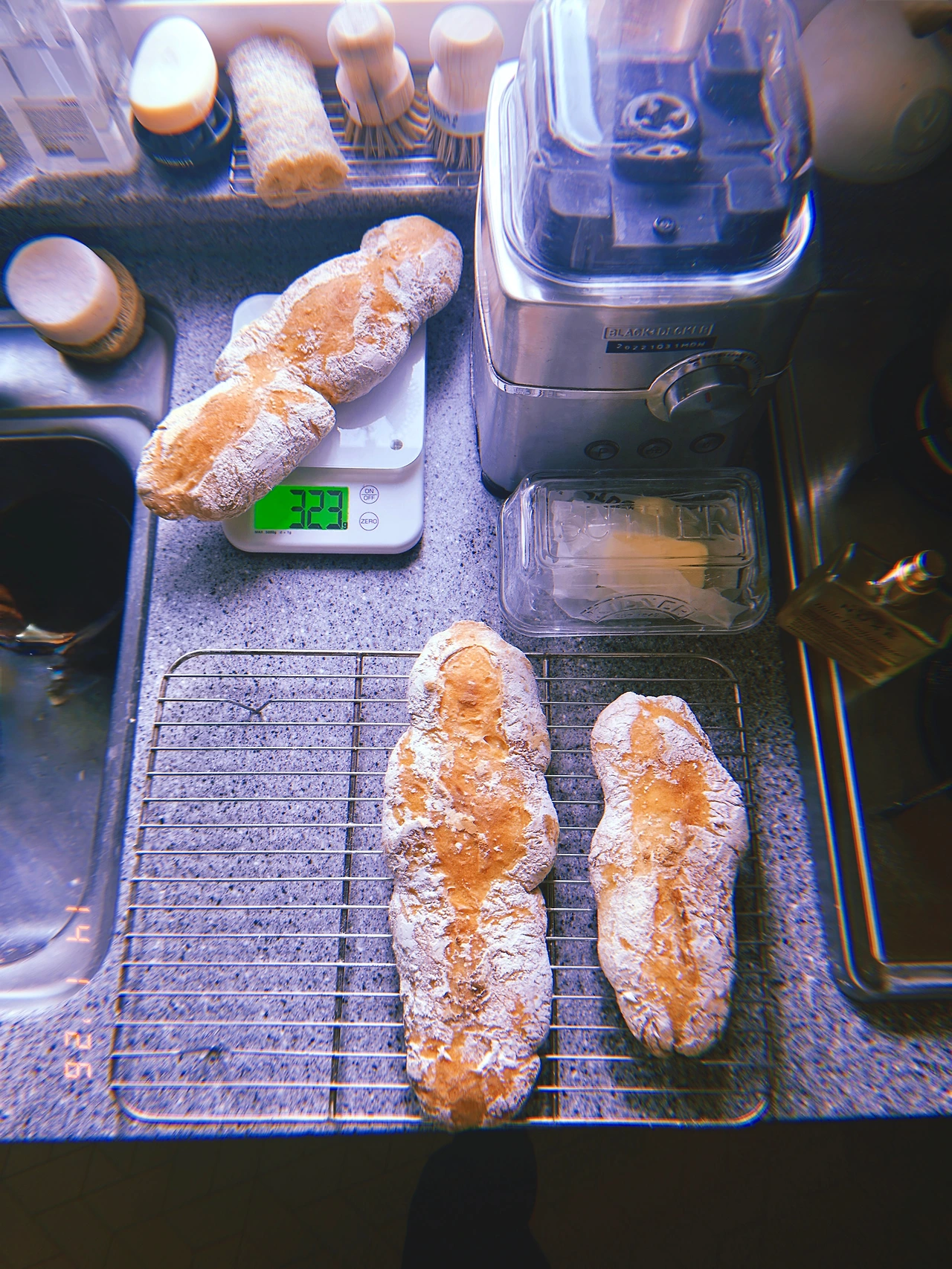 녹아내린 눈사람처럼 흐믈 납작하게 나온 바게트. 1200g 반죽. 샌드위치 만들던 영국 사람이 컴플레인 백 개 하고@‘