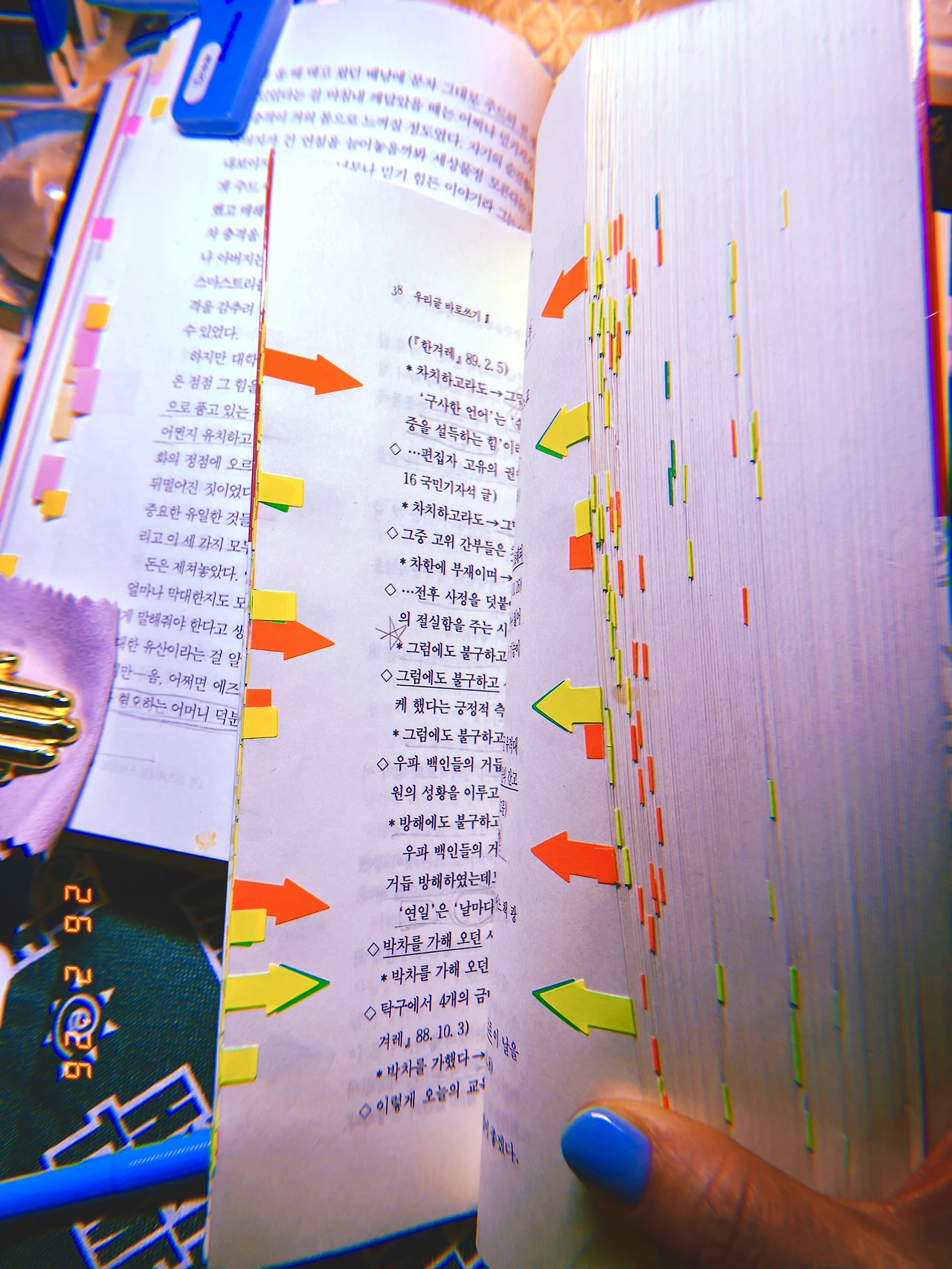 난 책에 인덱스 플레그 덕지덕지 징그럽게 붙여서 이런 애들 숨겨놨는데 너무 깔끔하게 붙인 이웃 발견했다. 담에 ‘깰끔 버전’으로 도전해보겠음. 색깔별로 카테고리 반드시 나눠야 하므로 중간에 색깔 부족하면 곤란한 이슈 있음.