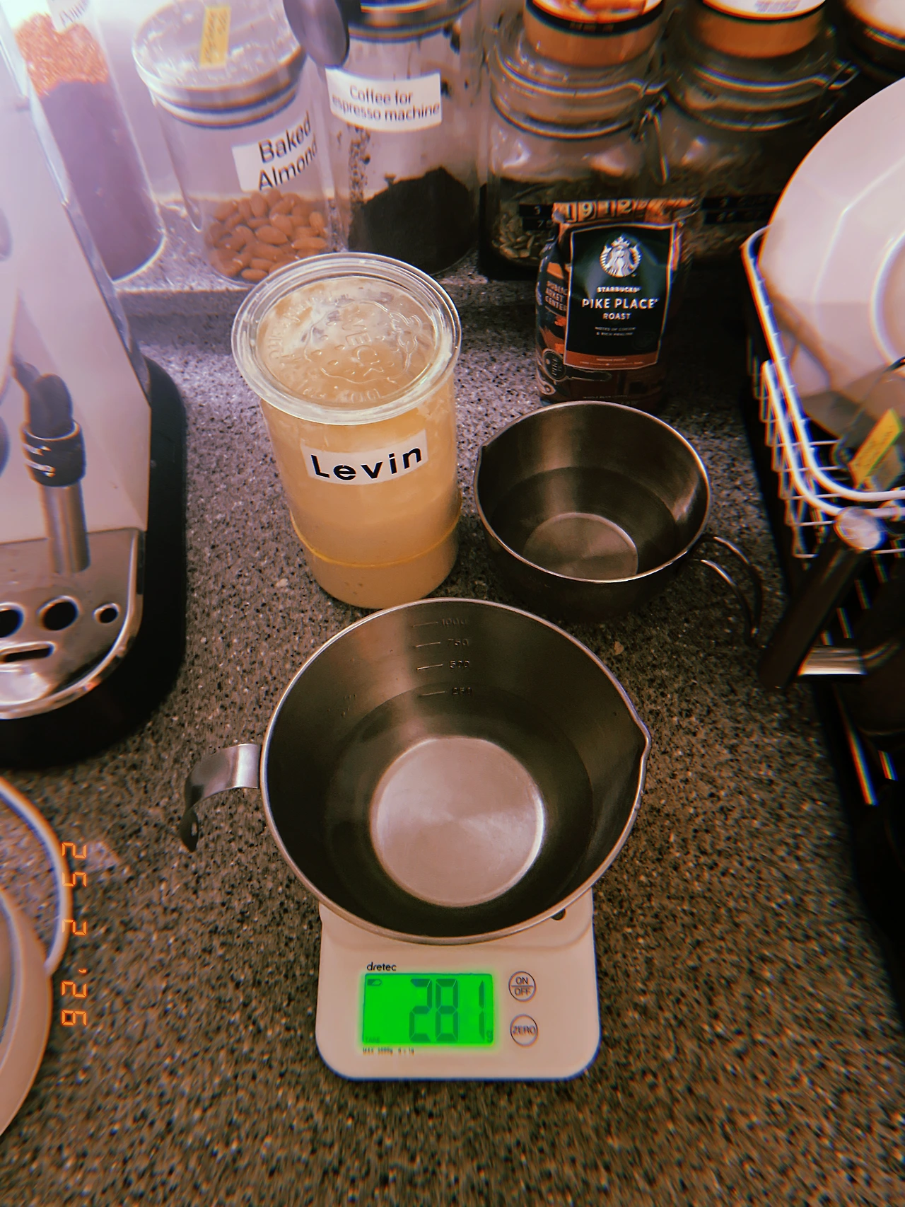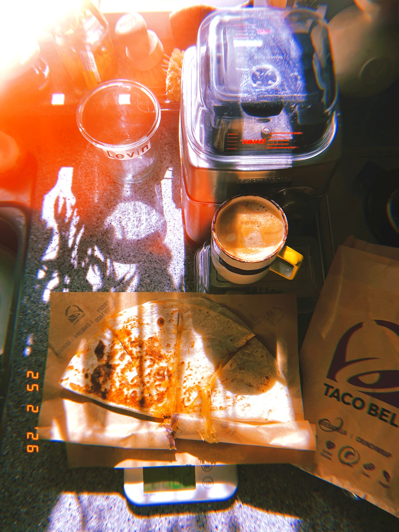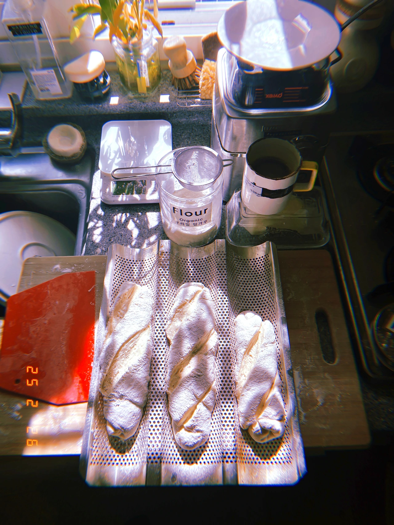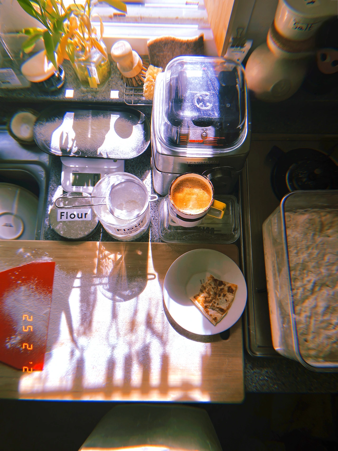 새벽 3시 보다 아침에 더 무럭! 자란 르방이 흐뭇해하며 영국 사람이 눌러준 더블 에스프레소 내리면서 케사디아 먹으면서 베이킹하면서 설거지하면서 커피 마심. #W25Jan2026