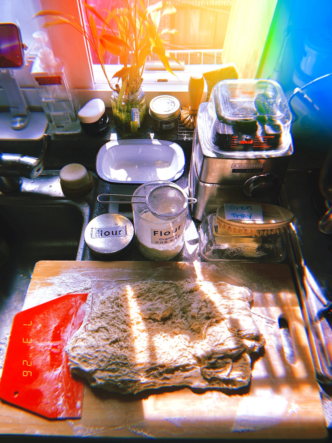 앗. 오늘 빵 좀 더 일찍 구워줄 수 있냐는 영국 사람 말에 sure 하고 촵촵해서 오븐에 던지고 뒷정리 한 다음 그가 눌러준 커피 뽑고 있는데, 문 앞에 서서 날 보며 계속 기다리는 거다.. (장 보러 안 가고) 뭐 하냐고 했더니 나랑 가려고 기다렸대@@' 썬크림도 안 바르고 잠옷인뎅! 내일 가자 내일. <뜨건 바겟에 치즈+버러+코휘> for bf. #Sunny3 #St7Mar2026