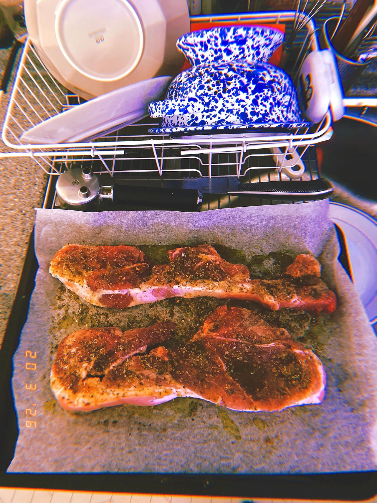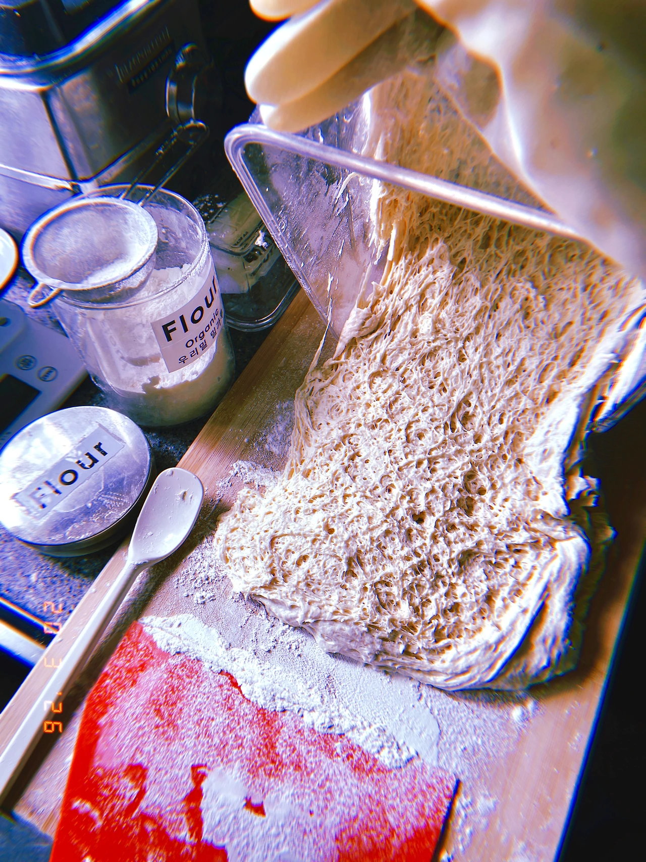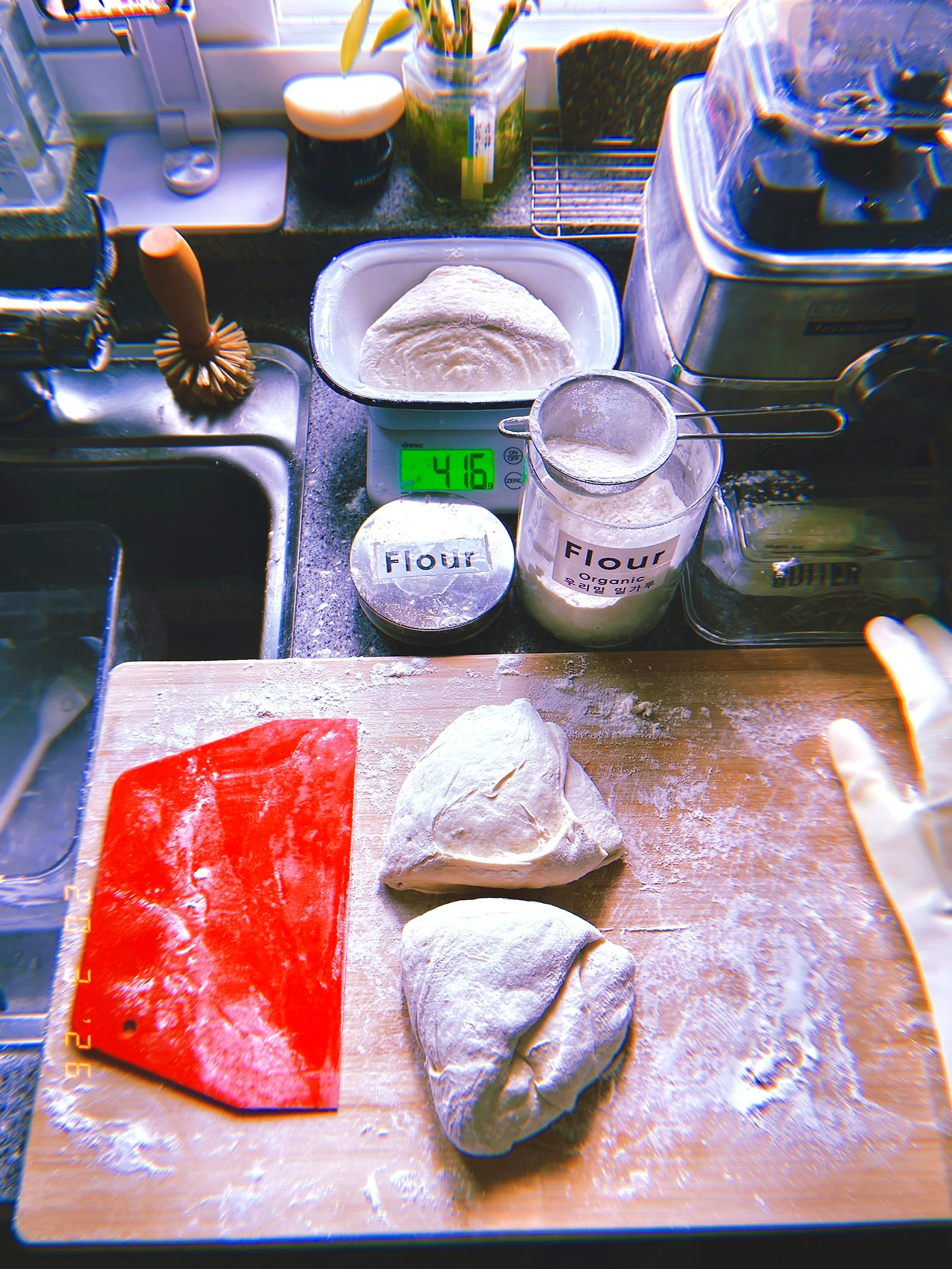 영국 사람이 <연어 스떼익> 해주기로 했는데 하필 오늘 쏠드아웃. 퇴근하고 푸줏간으로 달려가 신용카드 두께로 두 덩이(1.2kg) 끊어와서 오븐에 넣고 르방이 밥 주고 내일 사워도우 반죽 완료. #Dark7 #F20Mar2026