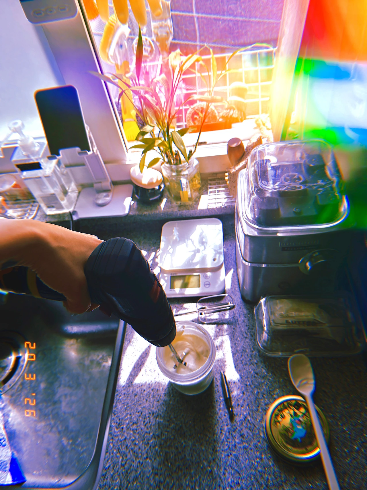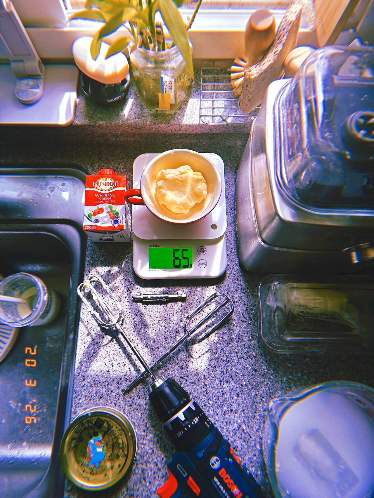 크림 200ml 죽도록 흔들면 나오는 버터 65g에 핑크솔트 촵촵 뿌리다 너마 짜짐 ×_× 오늘은 그릭 요거트 꾸덕 지점에서 핸드릴 마무리. 점심 고기와 채소 장 봐온 영국 사람에게 말하니 "나 츄라이 해야 해?" 해서 아니라고 하니까 "Phew~"하는 거다. 65g은 간에 기별 갈지 말진데 나도 Phew! 반사! #출근