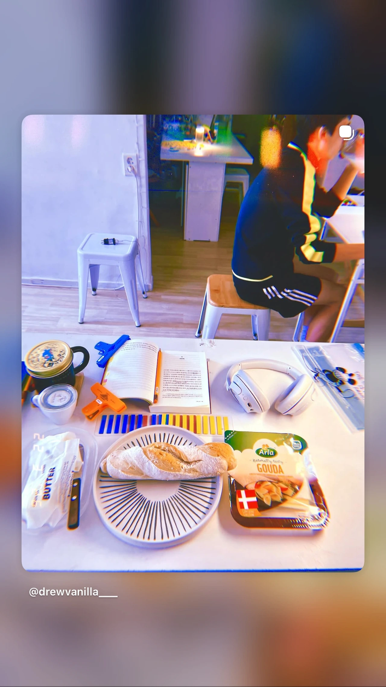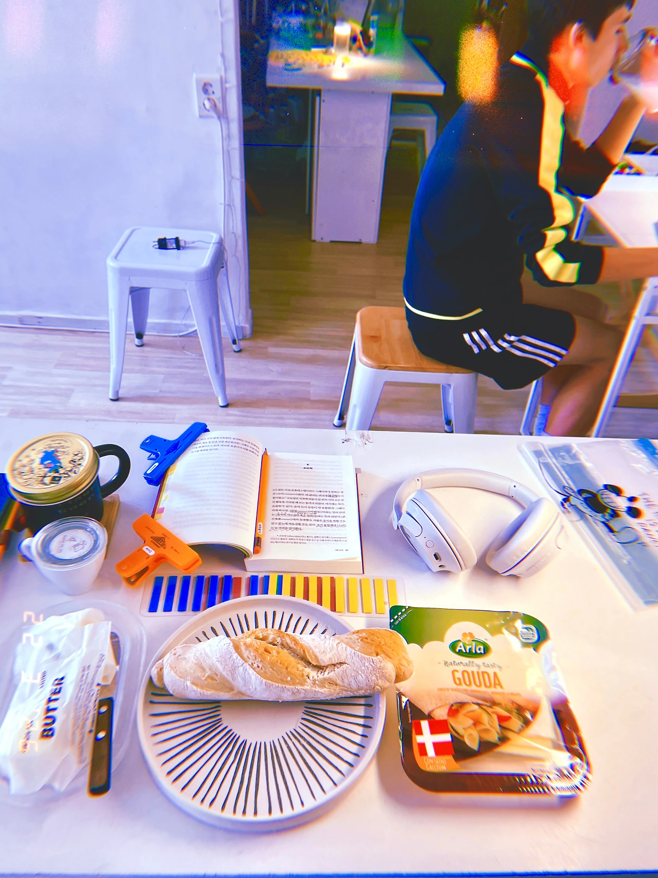 오븐에서 빵 다 구워진 얌전한 땡! 소리와 함께 등장한 운동 끝나고 온 청소년. 식탐은 제론데 우유는 무제한인 어린이 우유 한 컵(1L) 난 얼글리 뜨건 바겟과 꽁꽁 얼린 버터와 치즈와 코휘. #☀️12 #sundayvibes