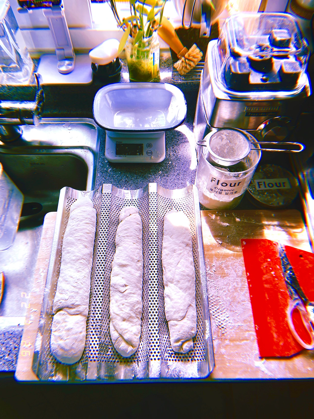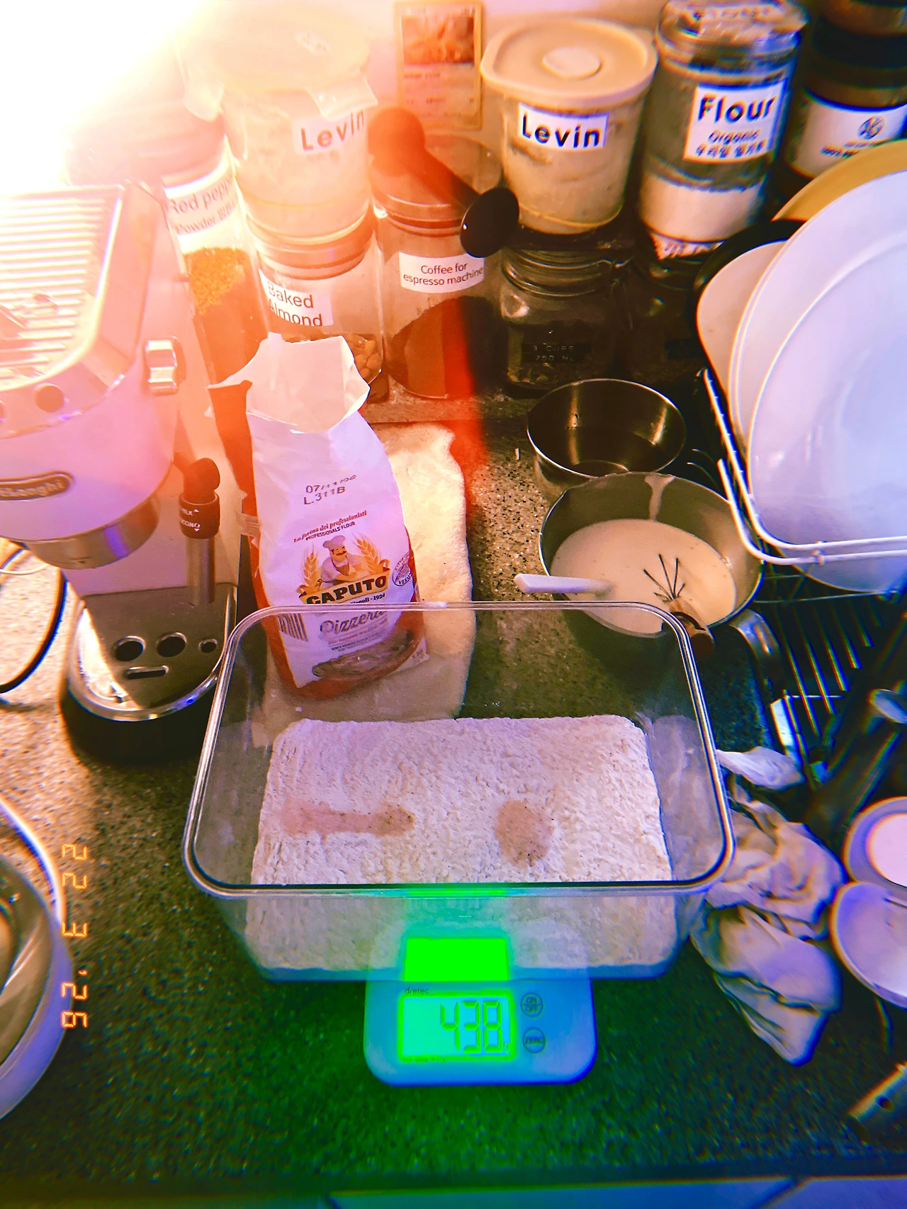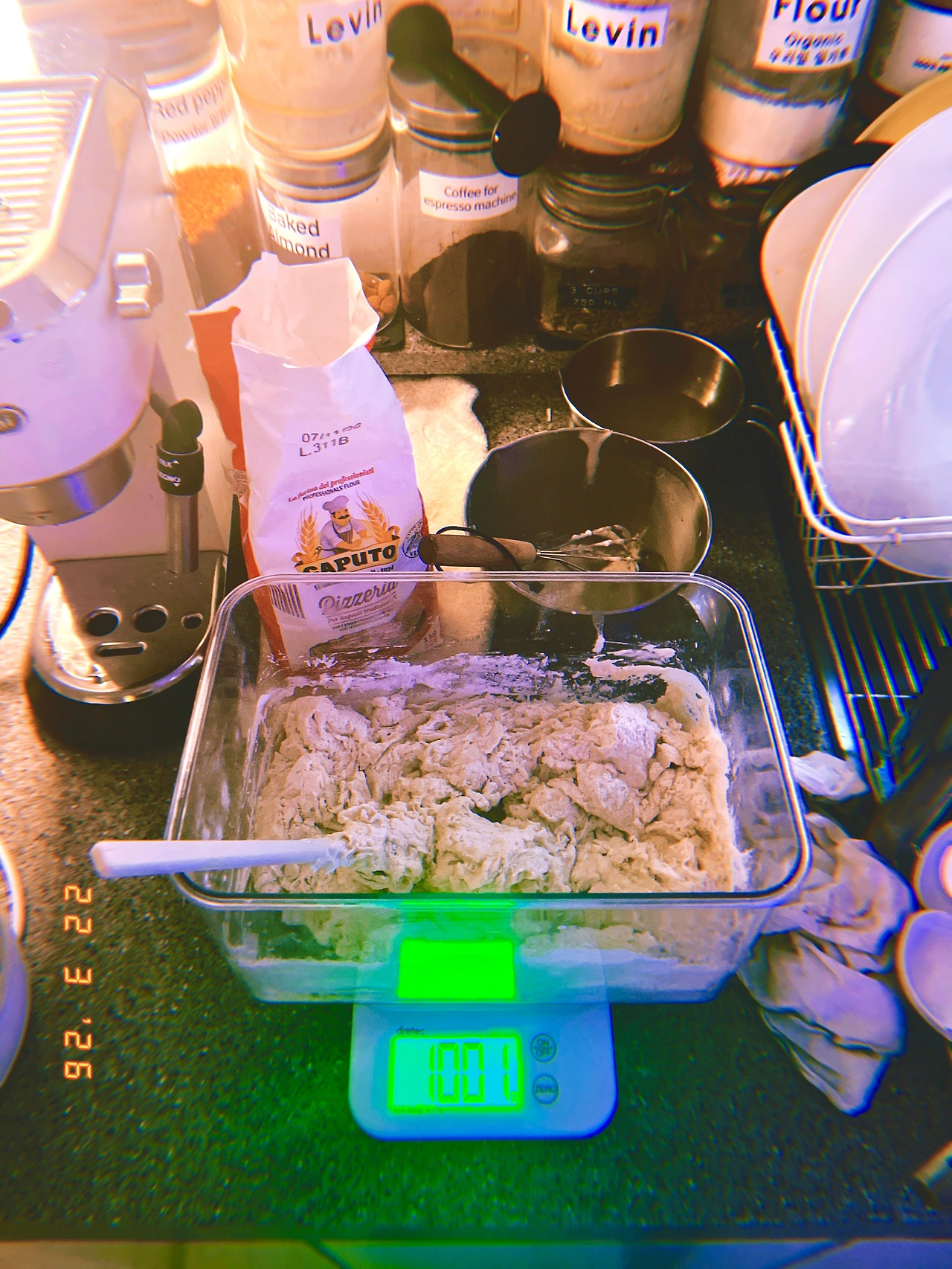 4pm 간식이 코스 식사가 되는 바람에 보이들 위한 저녁 요리 (르방이 먼저 밥 주고 내일 구울 사워도우 반죽 완료)하고 나서 같이(나도 저녁 식탁에 앉아야 함) 늦은 저녁을 늦-도록 먹고 나니 르방이가 쑥! 자라서 뚜껑에 붙어있는 거다! #일요일과월요일사이 #Dark5 #M22Mar2026