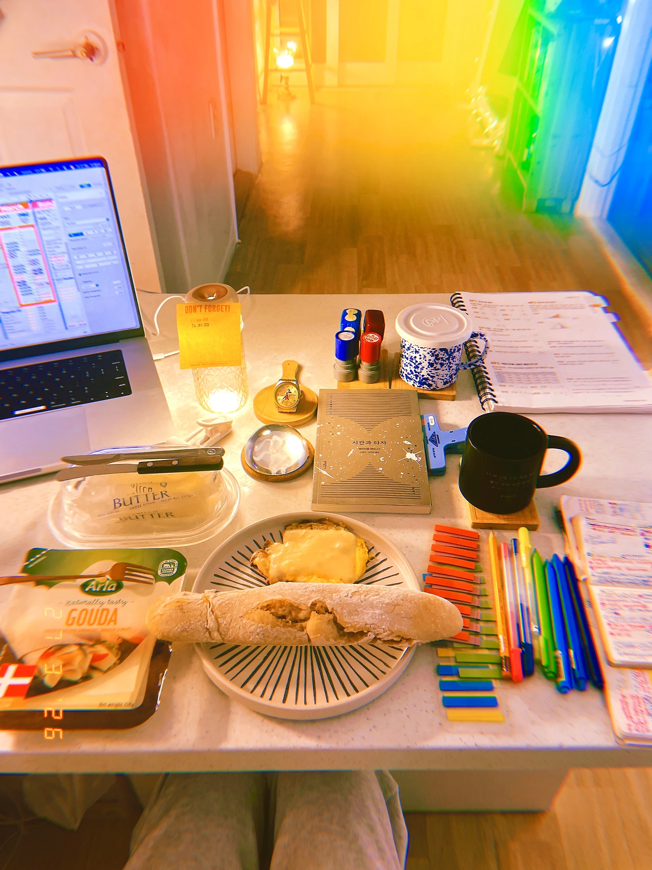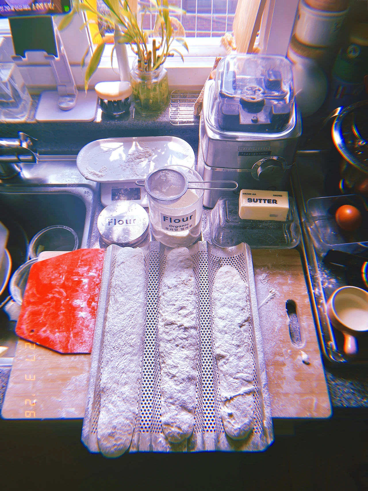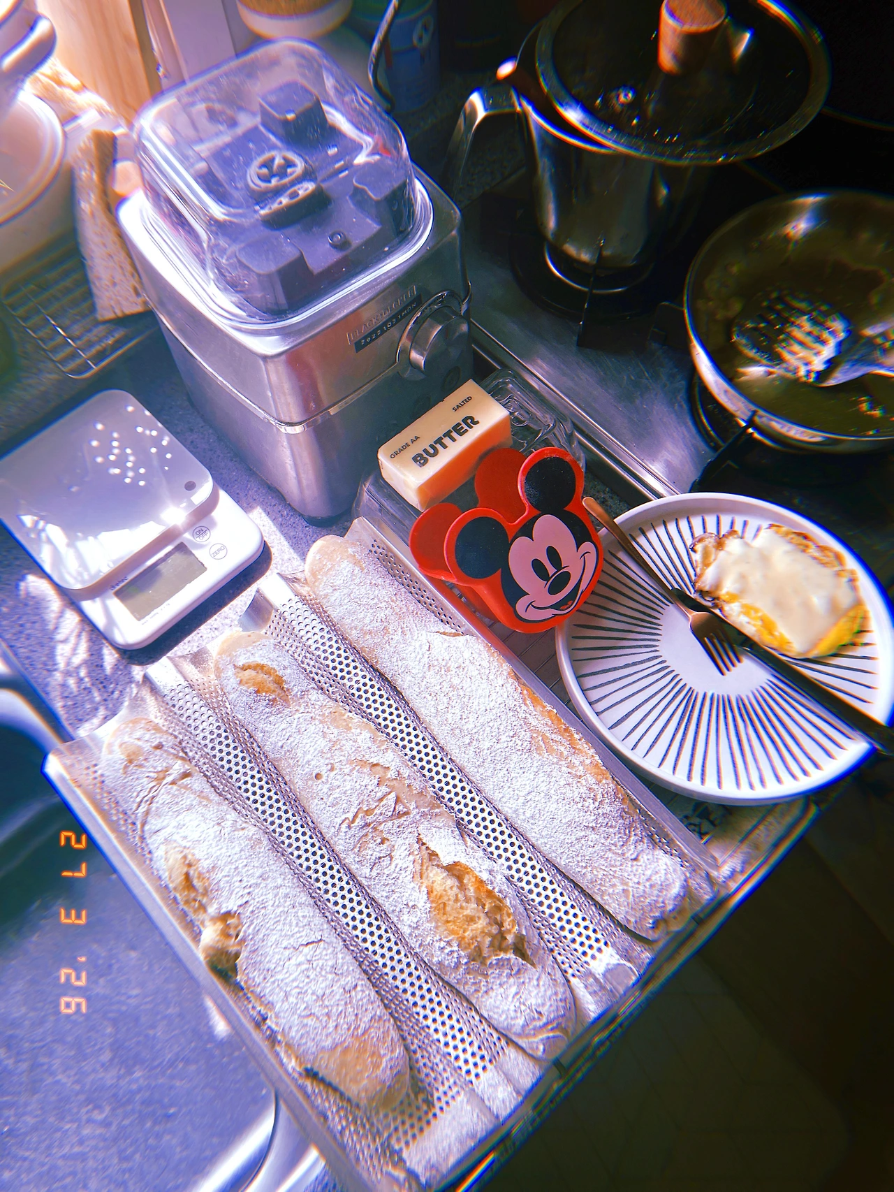 <프랑스 아저씨 5분 바게트> 덕분에 포기하려다 다시 시작한 초심으로 오늘은 반죽 그.대.로. '힘 빼고' 접지도 않고 쿠프도 없이 오븐에 넣었다. 어제 방심하고 휙휙 툭툭 구웠다가 바삭함과 두꺼움이 과하게 초과한 이유다.(턱 아작각) 달걀과 치즈도 구워서 프로틴도 보충. 영국 사람이 눌러준 더블에스프레소로 카페인도 보충 for bf. #Sunny16 #F27Mar2026