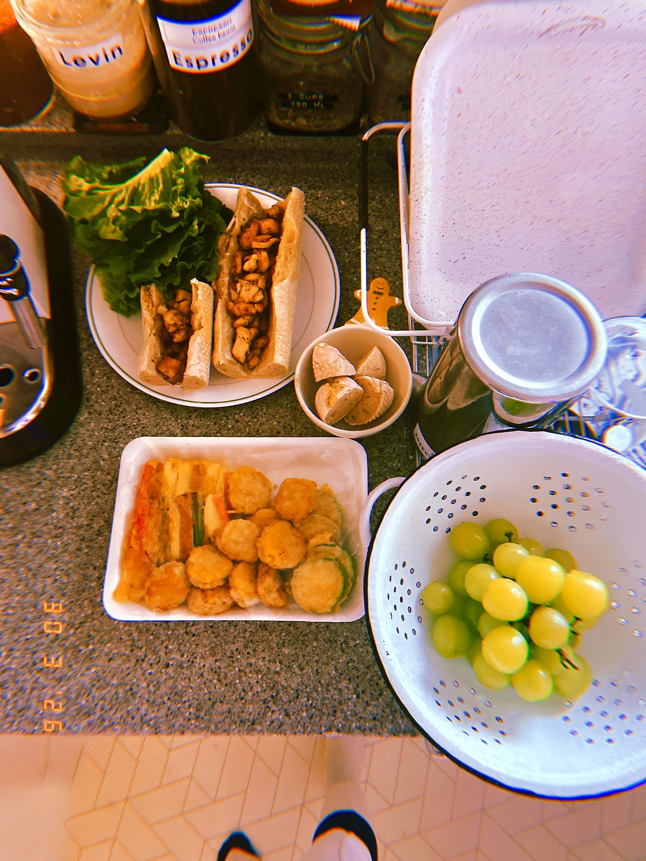 모둠 전 1/2+밥, 피넛 버러에 바겟 꼬다리, 포도 6알. #퇴근 후 르방이 밥 주면서 흡입한 #간식 아니 #식사 힘내서 저녁 <버섯 호박 대파 양배추 불고기> 약간 맵게(+고춧가루 1T)하여 보이들과 늦은 저녁. 영국 사람이 맛있다고 4번 말했다. 청소년에겐 먹으라고 17번 말해서 다 먹게 했고. #극과극