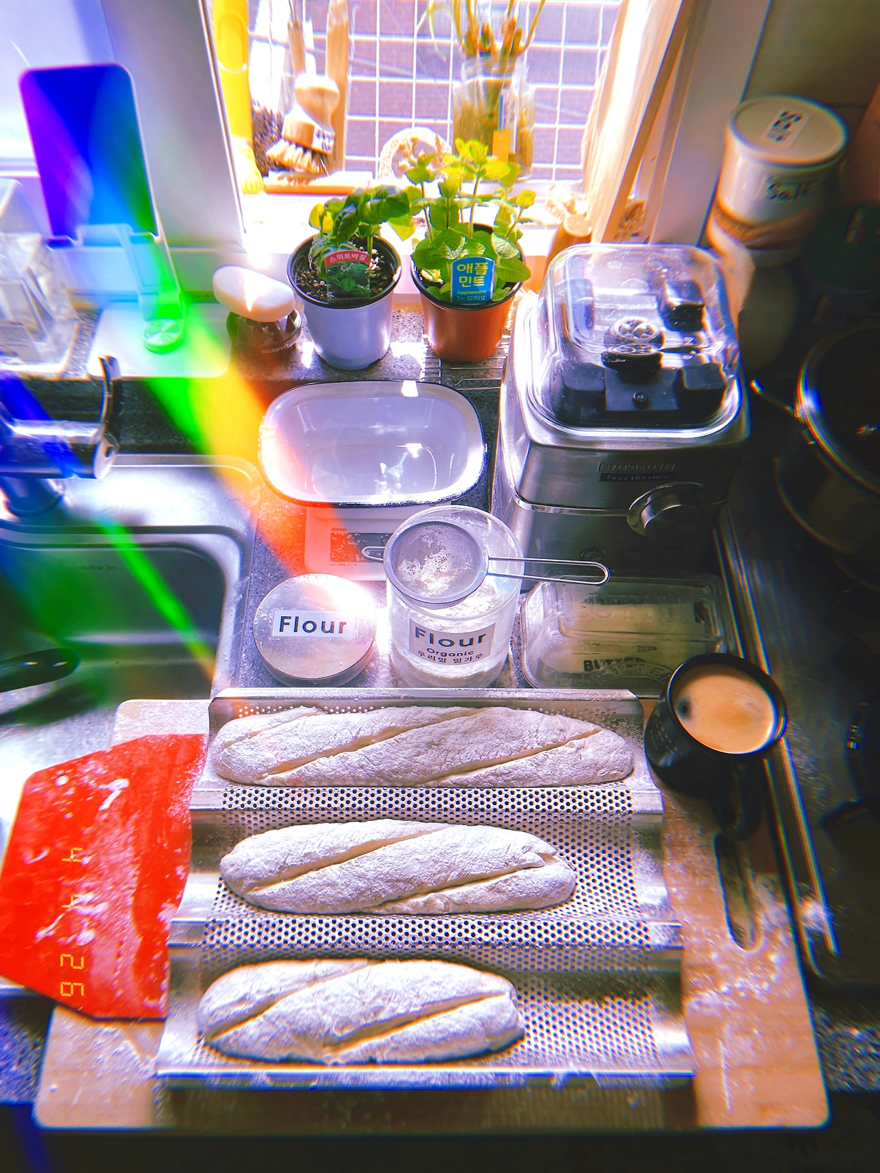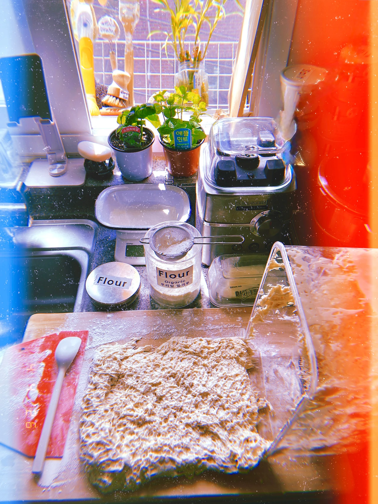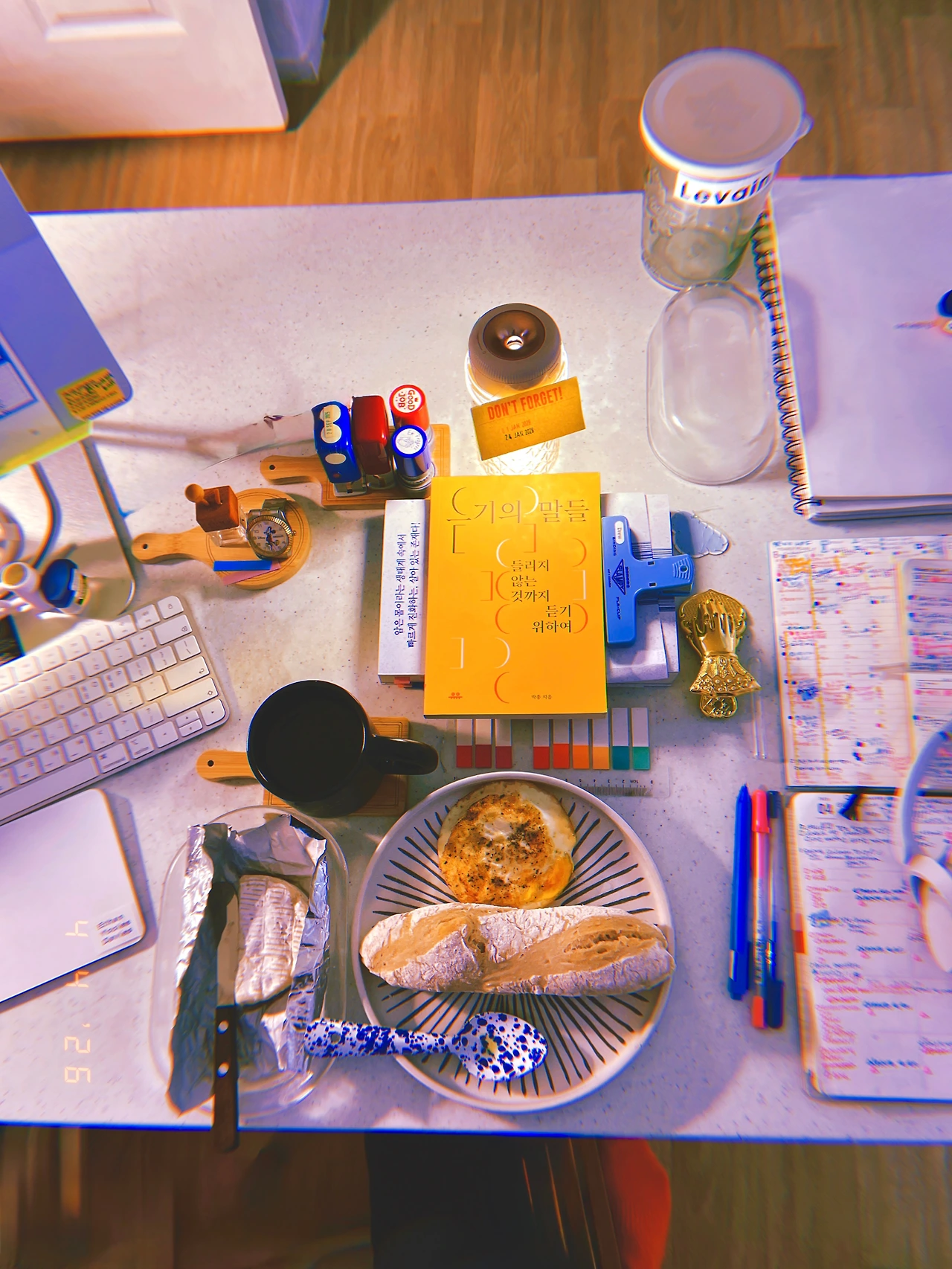 <음기의 말들>로 보이지만 #듣기의말들 #유유 #재독 작년 <서울국제도서전>에 갔다가 쓸어온 유유 출판사 시리즈 중 <들리지 않는 것까지 듣기 위하여> 뜨건 바겟+브리치즈+계란 후라이+영국 사람이 눌러준 더블에스프레소 for bf. #Sunny19 #St4Apr206