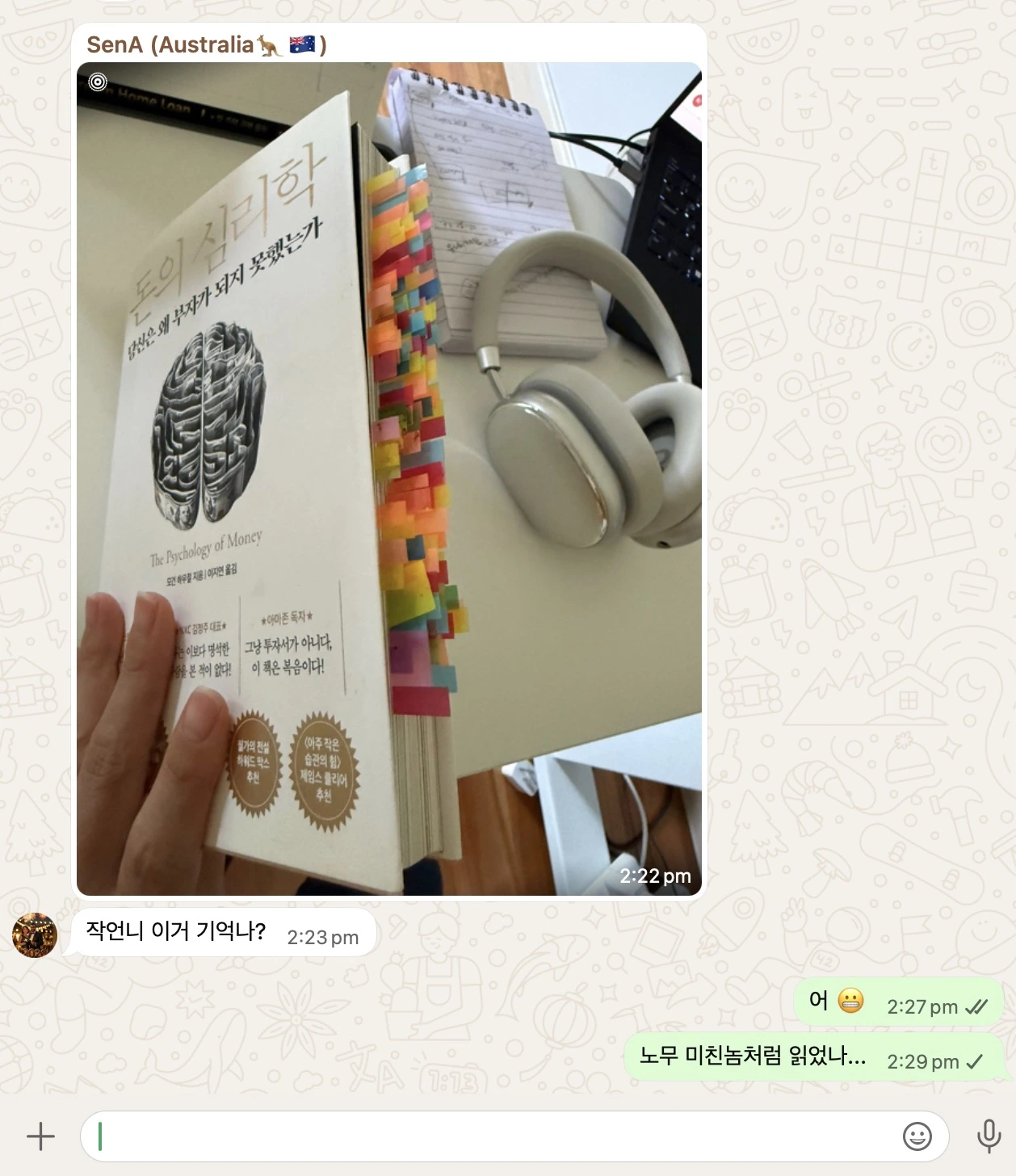 유일하게 (울 언니도 안 빌려드림`з´) 동생에게 보내주는 내 낙서 난장판 책들.. 읽던 동생이 묻는다. "이거 기억나?" 나처럼 돈 개념 없는 애가 이렇게 미친놈처럼 열심히 읽었냐로 바로 읽힘.´ㅅ`